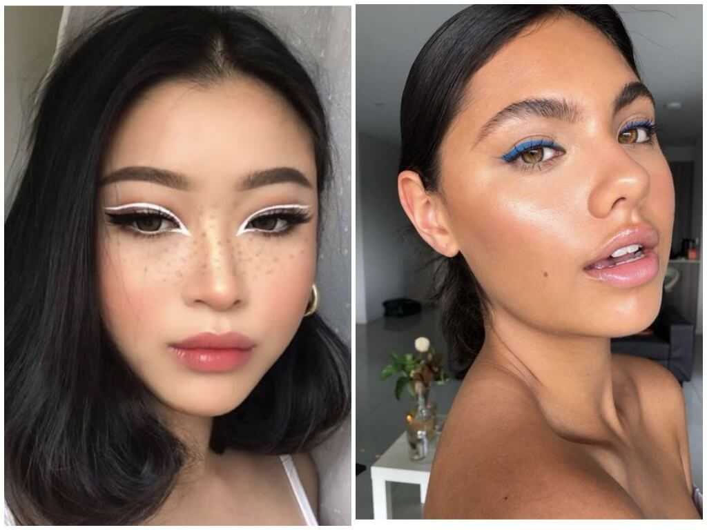 Можно использовать не только цветные подводки, но и лайнеры с карандашами. Главное, чтобы косметика была качественной и не скатывалась от жары.
