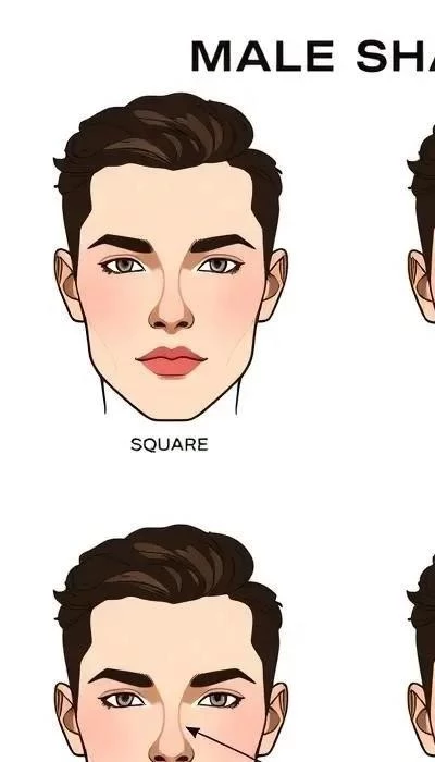 Контурирование для квадратного типа лица требует смягчения угловатых черт. Нанесите скульптор под скулы, начиная от уха и двигаясь к уголку рта, но не доходя до него. Это визуально сузит лицо. Также рекомендуется наносить контур на боковые стороны лба, чтобы уменьшить его ширину. Хайлайтер нанесите на центр лба, спинку носа и подбородок, чтобы привлечь внимание к этим областям. Мужской контуринг лица в данном случае направлен на создание более мягкого и гармоничного образа.
