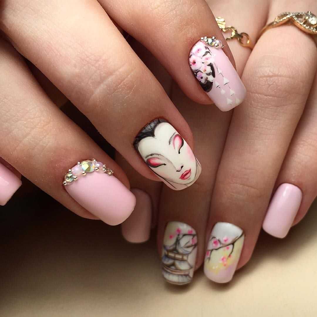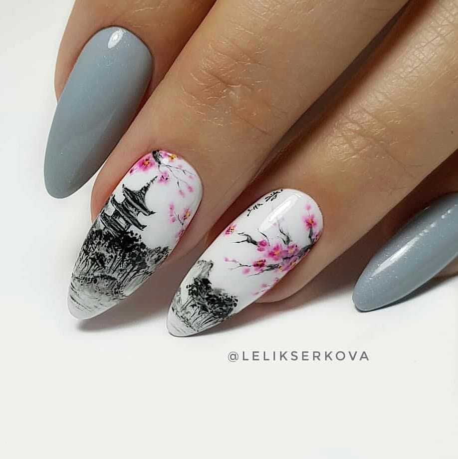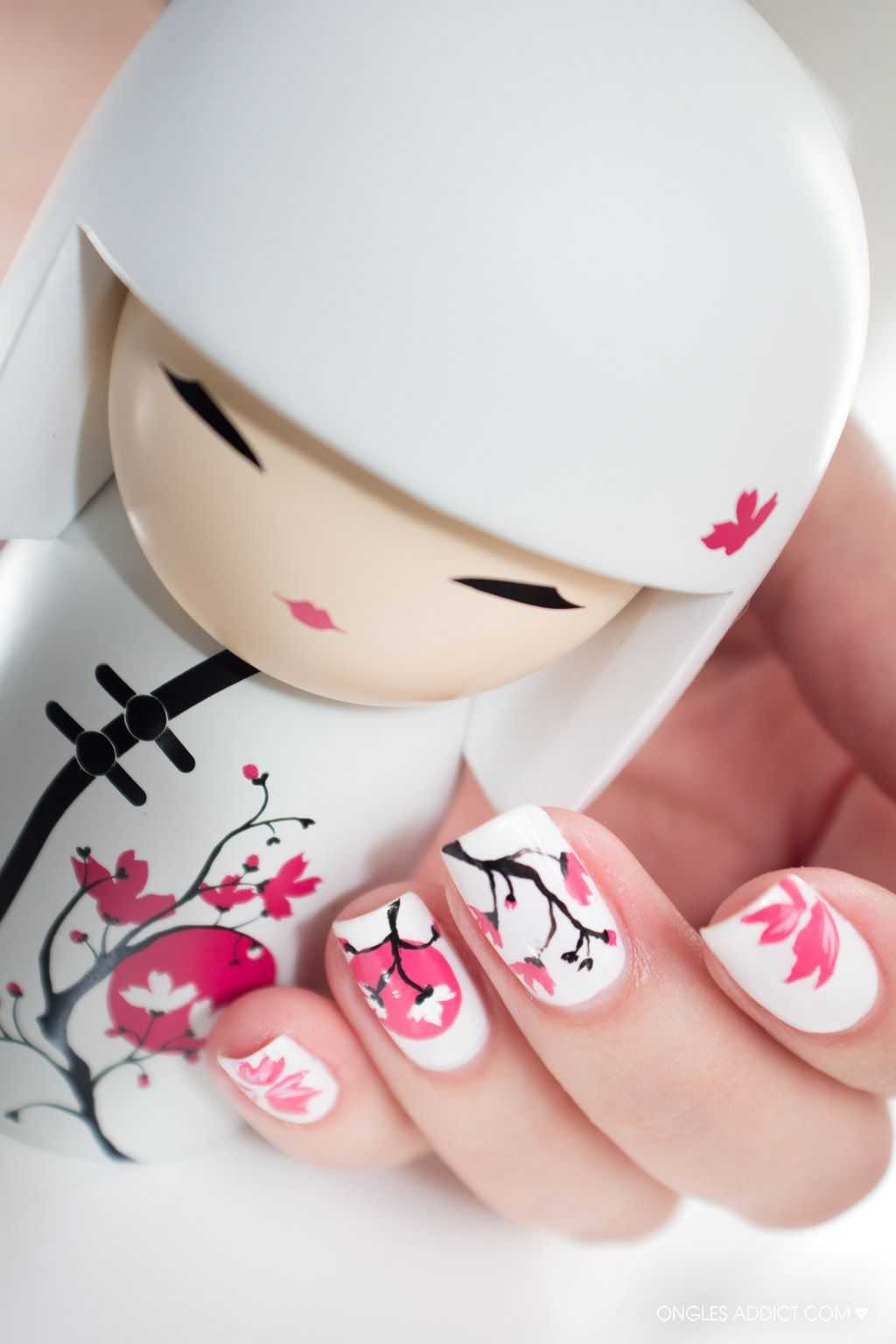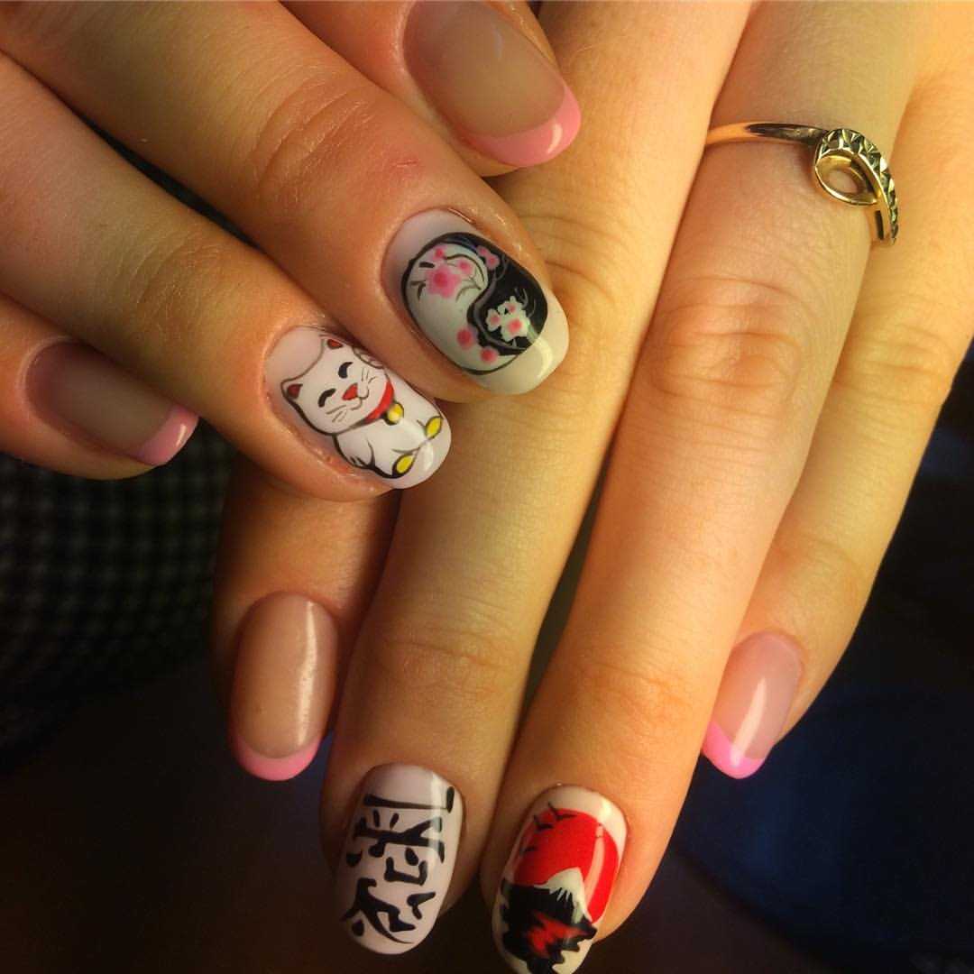 #1 Маникюр в японском стиле: сакура, пагода, иероглифы