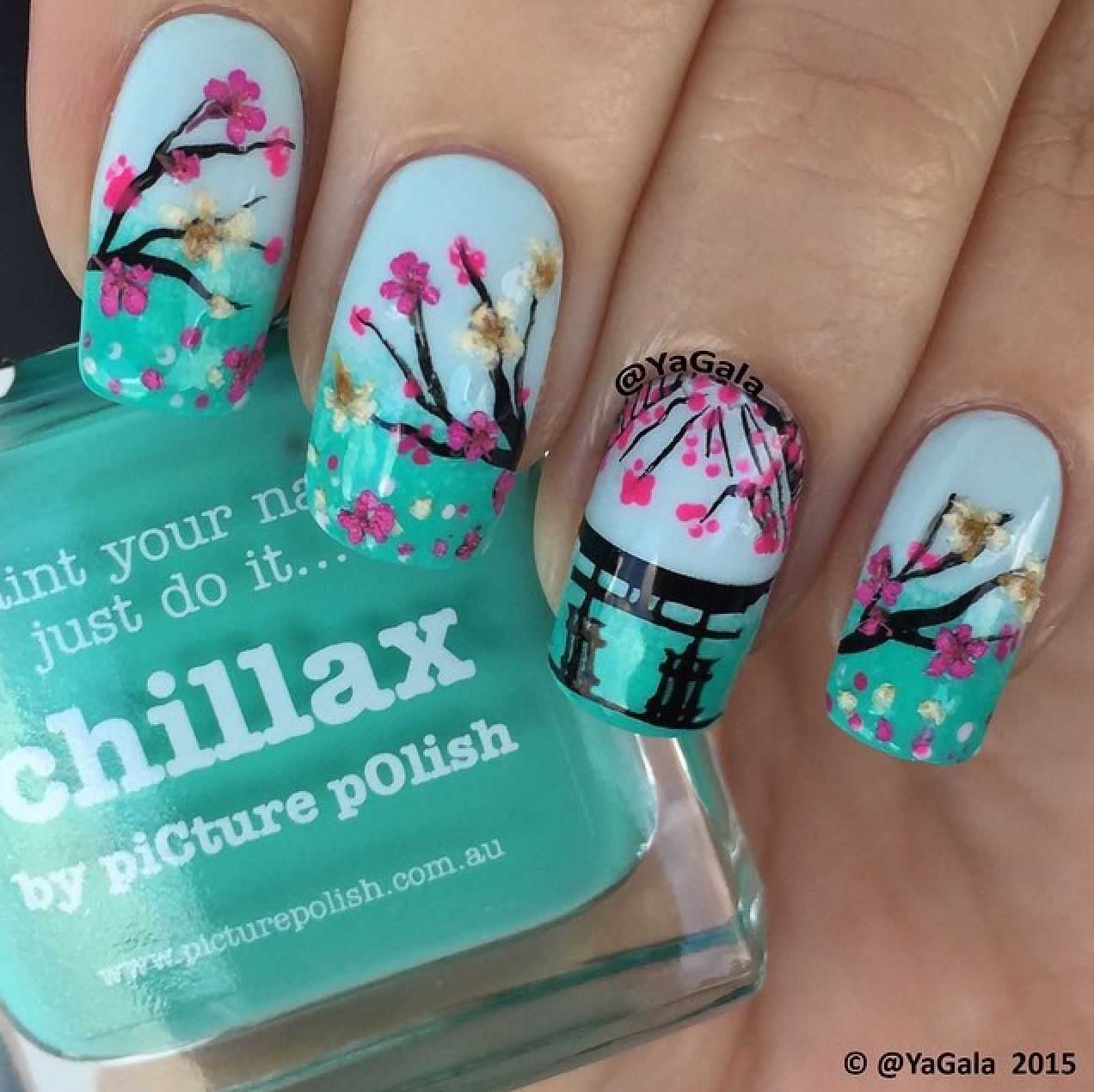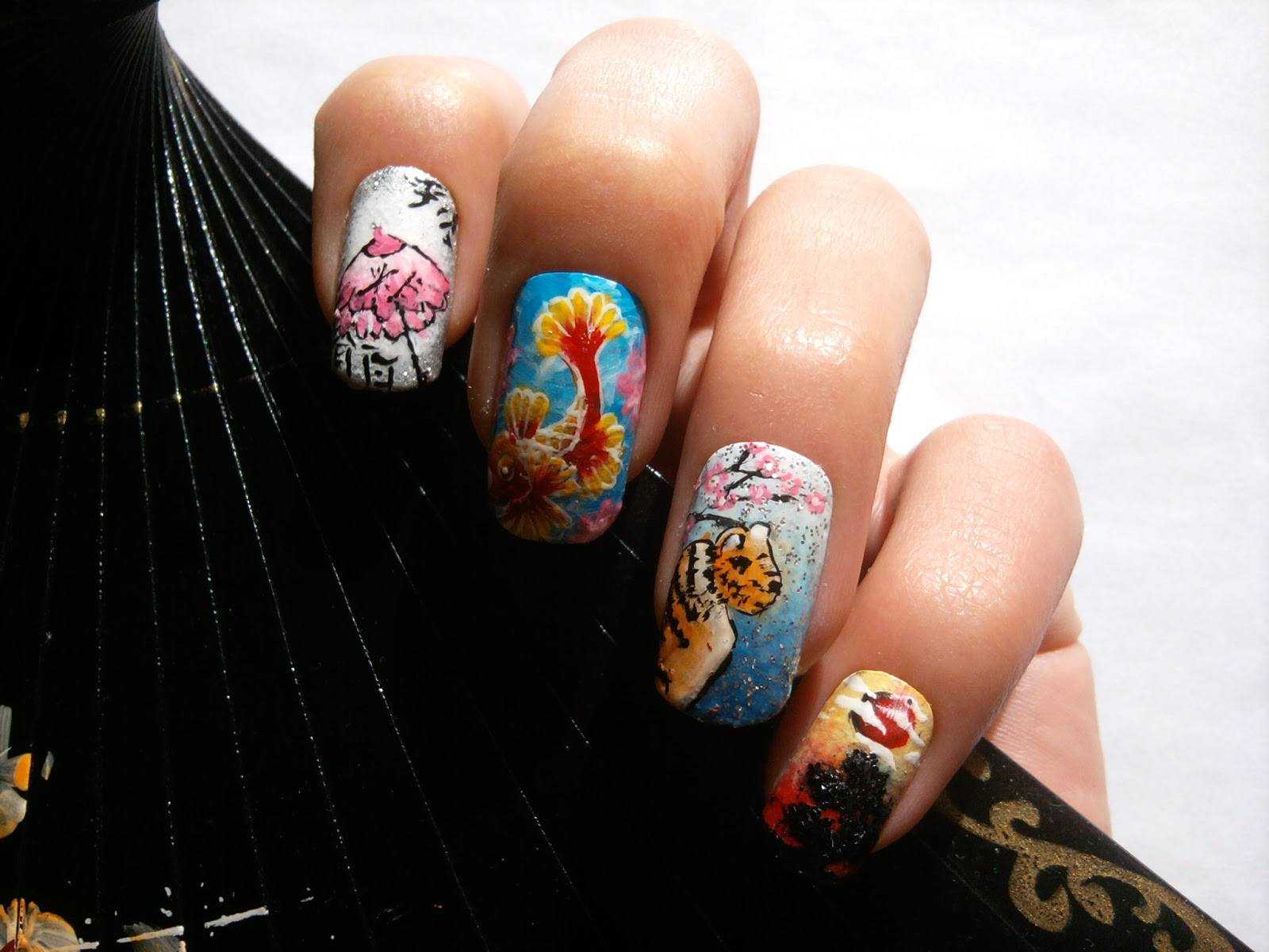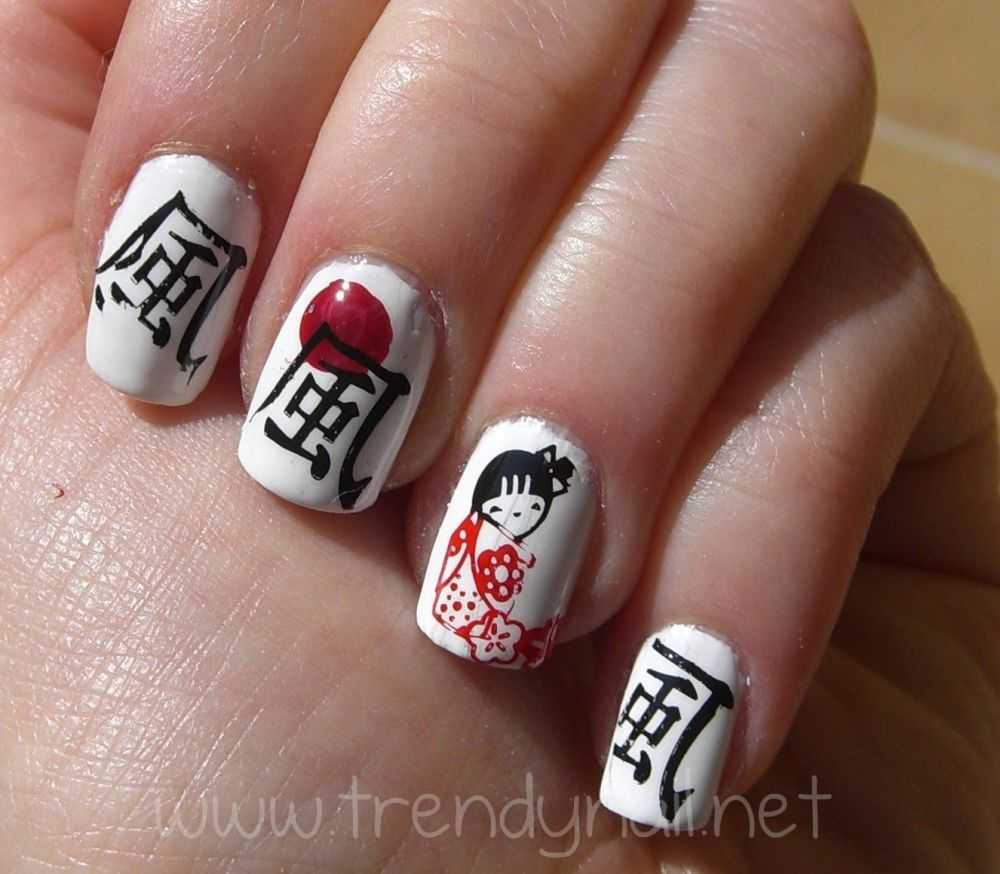 #1 Маникюр в японском стиле: сакура, пагода, иероглифы