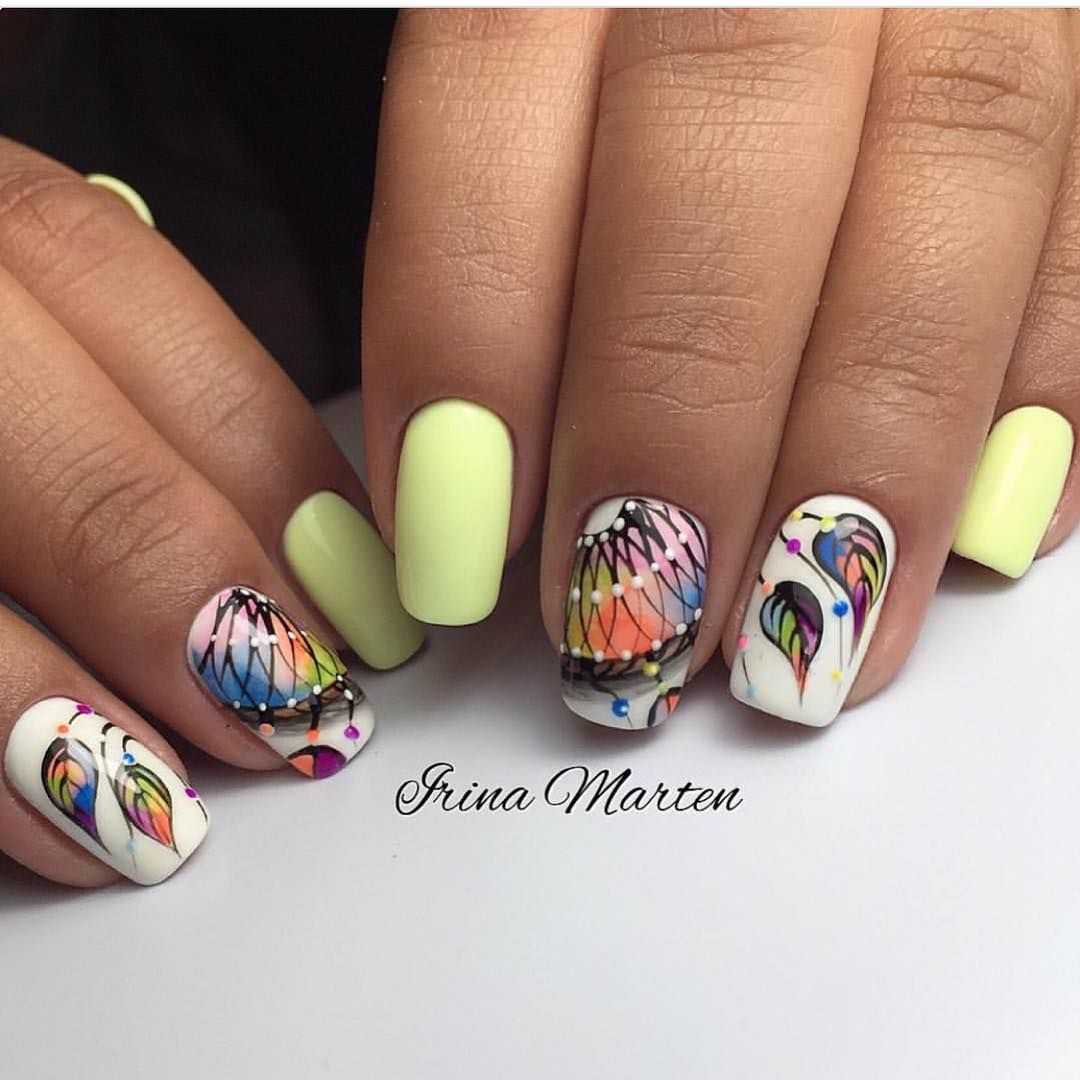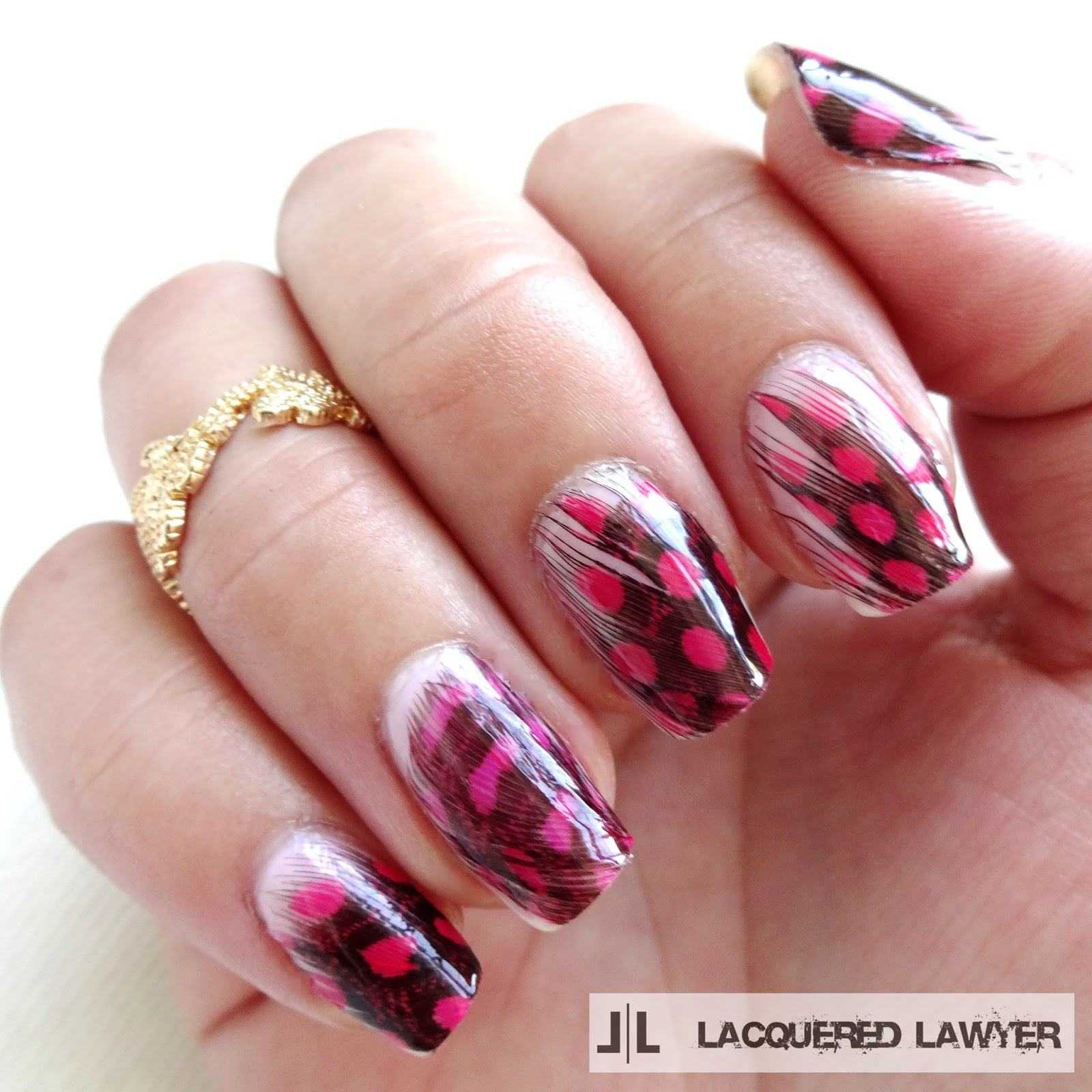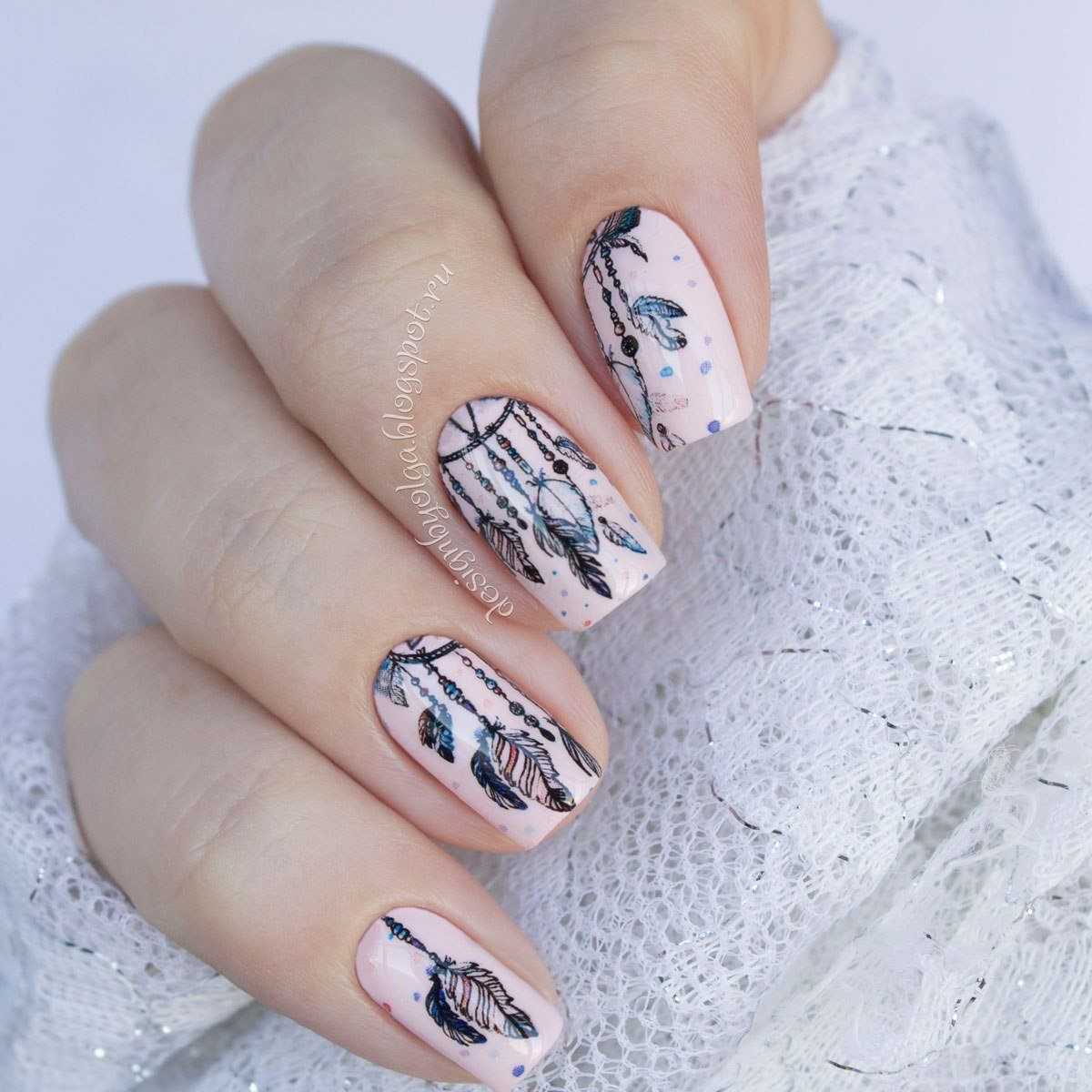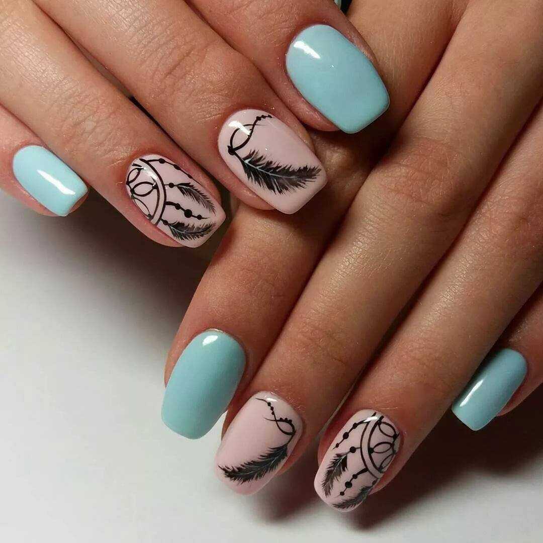 Благодаря простоте реализации этот прием стал очень популярным. Такой модный маникюр смотрится естественно и изысканно. Для его создания используются павлиньи перья, которые наклеиваются на ногти между слоями прозрачного гель-лака.