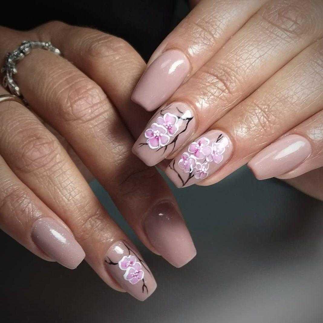 Маникюр с сакурой – отличное решение для весеннего и летнего образа. Сакура на ногтях смотрится гораздо интереснее, чем привычная флористика. Нарисовать сакуру сможет даже далекий от нейл-дизайна человек. Для этого можно использовать дотс и маникюрную кисть.