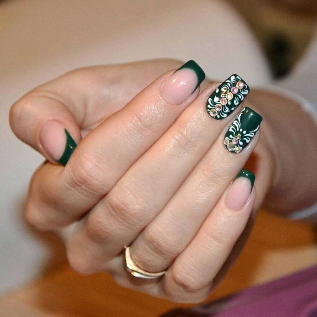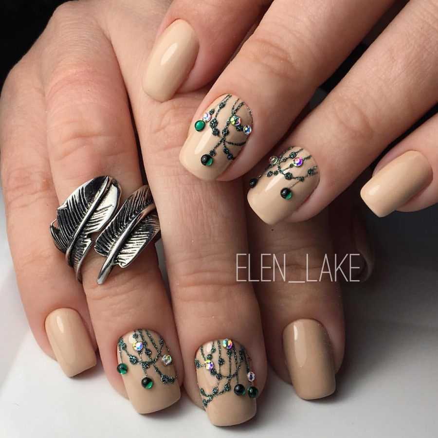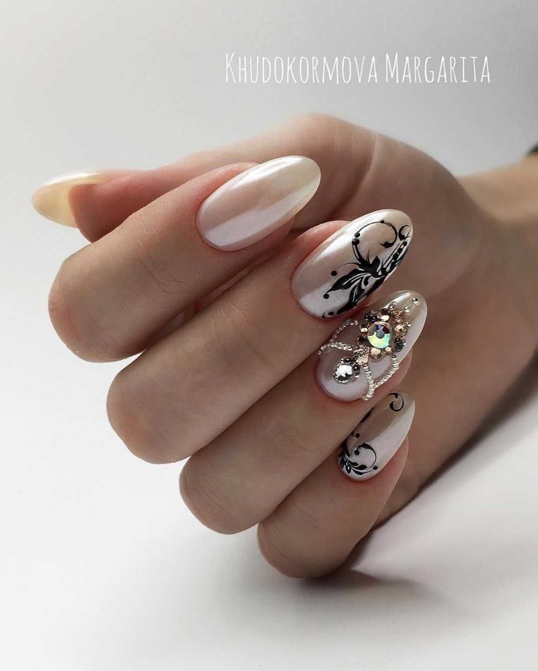 По желанию можно сделать маникюр с использованием маленьких камешков, с добавлением нежного изображения.