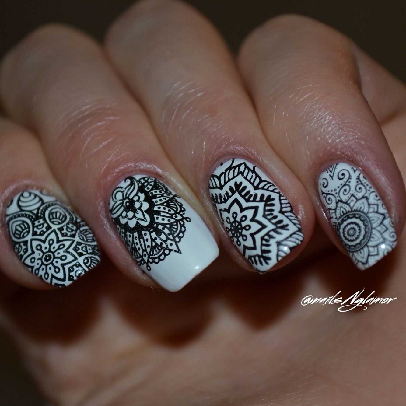 Если вам нравятся узоры мехенди, но вы пока не решаетесь изобразить их на своем теле, то попробуйте выполнять маникюр с этими интересными и изящными узорами. Роспись мехенди можно выполнить как маникюрными кистями, так и воспользоваться стемпингом. Последний вариант более предпочтителен, так как позволяет создать четкий и детальный узор без погрешностей.