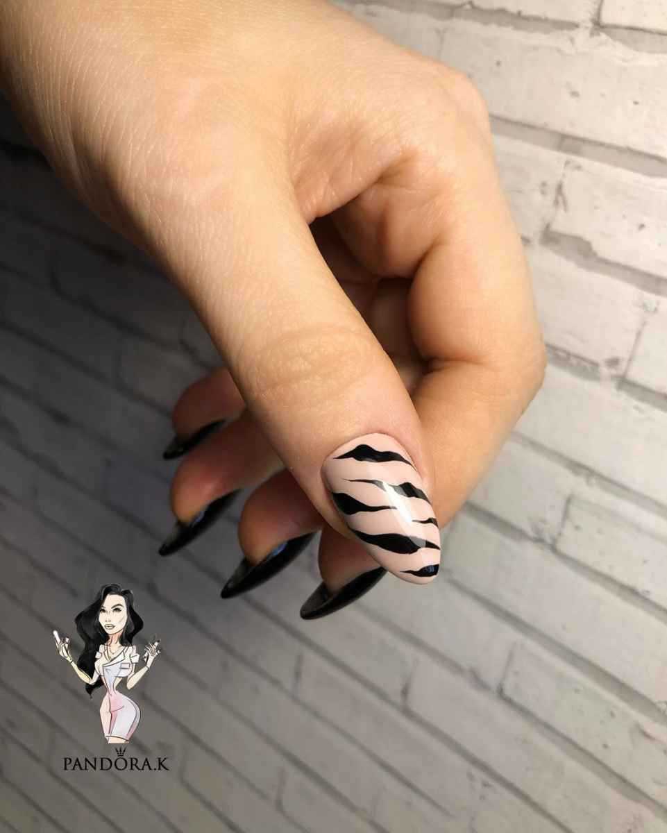 смотрится тигровый маникюр, нанесённый только на один ноготь каждой руки