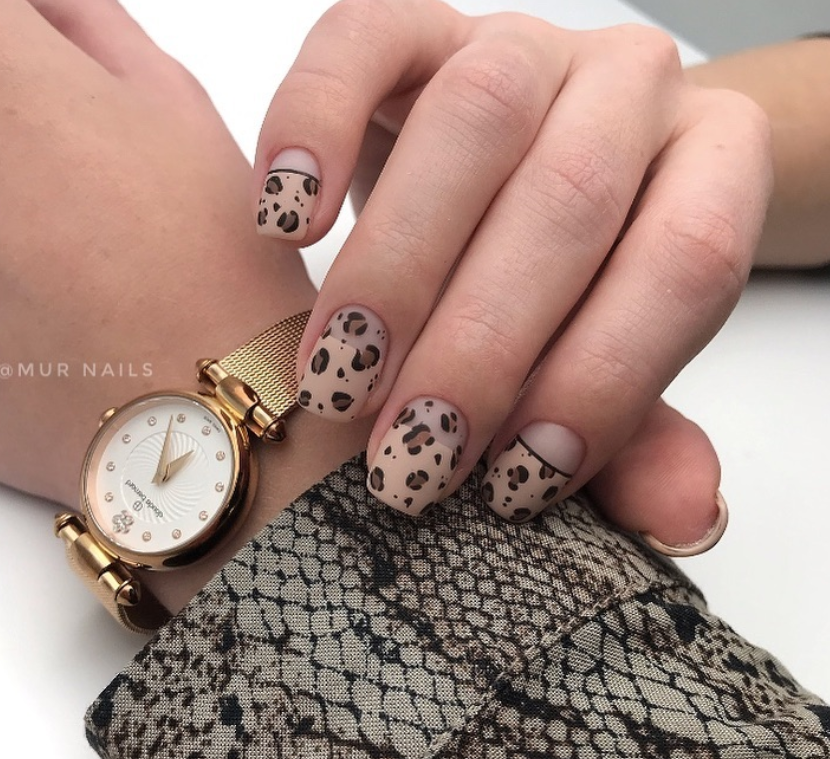 Короткие ногти с леопардовым принтом (дизайном): фото 2021-2022