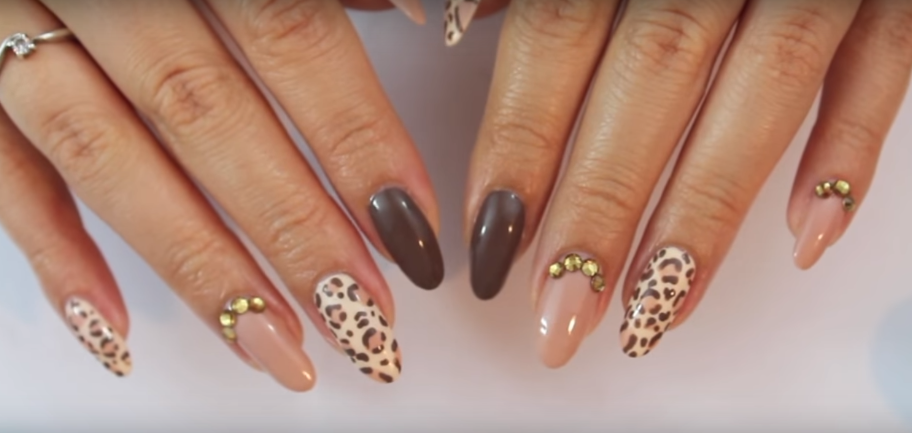 Фото-новинки леопардового маникюра с дизайном стразами и блестками