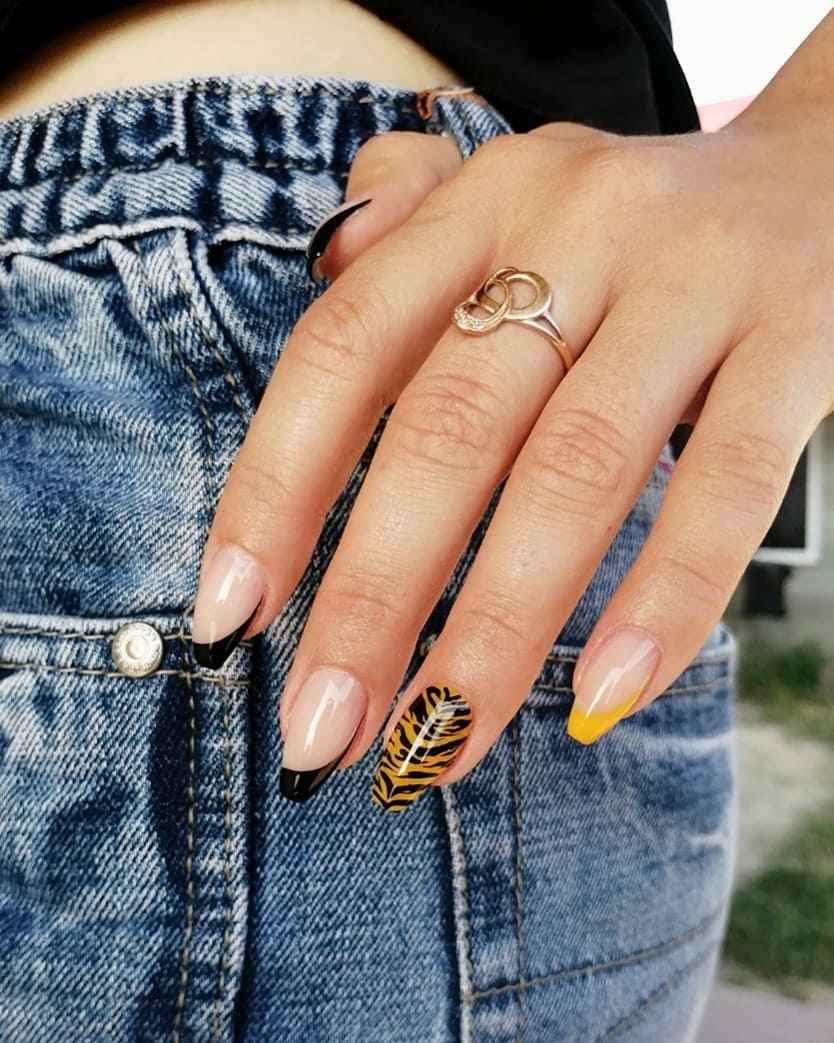 Сочетания цветов и декора в тигровом дизайне ногтей