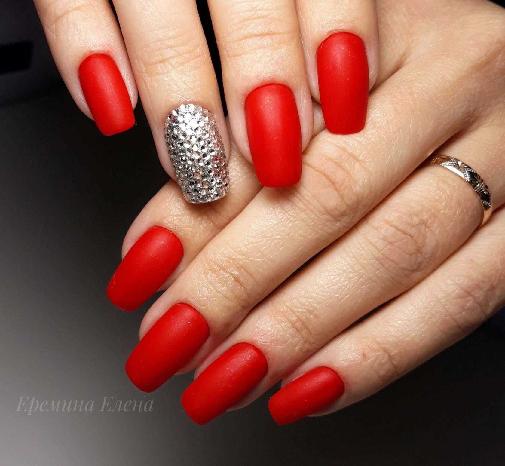 Праздничный красный маникюр тогда считается удачным, когда он гармонирует с нарядом, имеет яркий дизайн, выполненный со вкусом. Декор предполагает наличие одного или пары красных аксессуаров, а вот по части элементов он практически не ограничен, главное, чтобы они не выбивались из общего стиля и сочетались с украшениями.