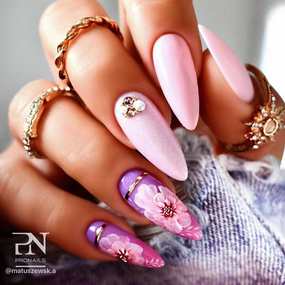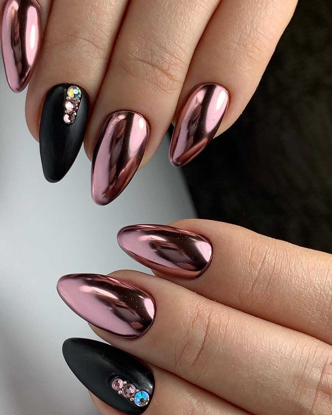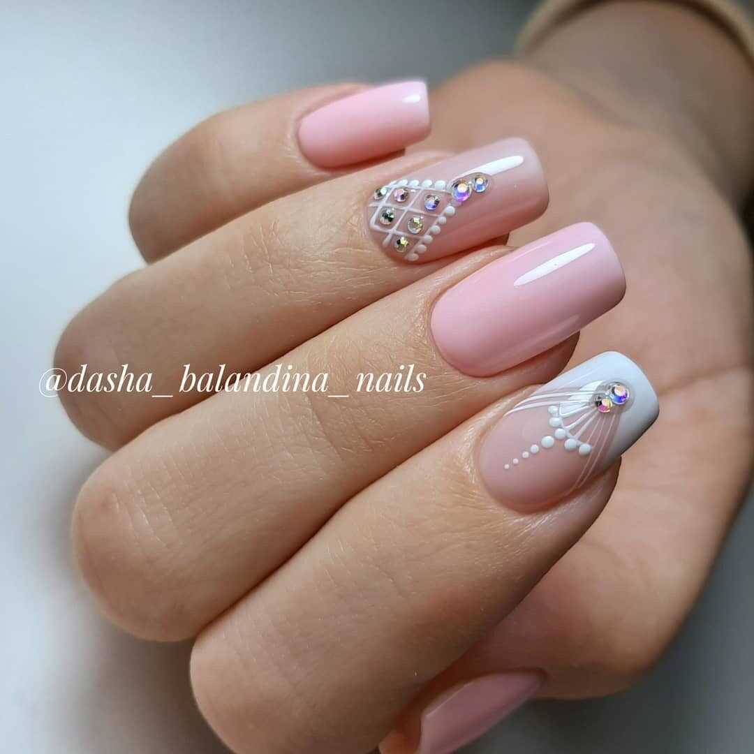 Для украшения маникюра сегодня используются стразы из стекла, циркония, акрила или полимера. Украшения могут быть круглыми, овальными, каплевидными, ромбовидными и любой другой формы. Что касается размера, здесь тоже имеется множество вариаций. В зависимости от вида поверхности страз большой популярностью пользуются гладкие, в виде жемчужин элементы, стразы с огранкой под драгоценные камни, бусины-икринки, жемчужины Синджу, похожие на маленькие морские камушки и мелкая крошка кристаллов pixie. Каждый, из предложенных примеров, отличается особенным блеском, что позволяет создавать маникюр в разных стилевых направлениях. Стразы на ногтях могут потрясающе сиять и преломлять блеск, удивлять эффектом «хамелеона» или восхищать нежным перламутровым или жемчужным блеском. Любой вид дизайна смотрится невероятно красиво и может сочетаться между собой.