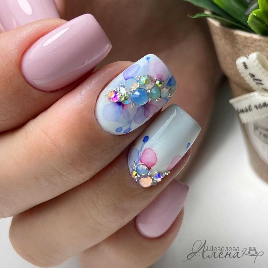 Декор при помощи страз прекрасно сочетается с ногтевыми пластинами любой длины и формы. Короткие ногти гармонично смотрятся с блестящими акцентами и одиночными украшениями. Длинные ногти позволяют воплотить в реальность самые разные фантазии. Техника выполнения маникюра при этом совсем не имеет значения. Более стильного и красивого маникюра в 2021 году придумать просто невозможно.