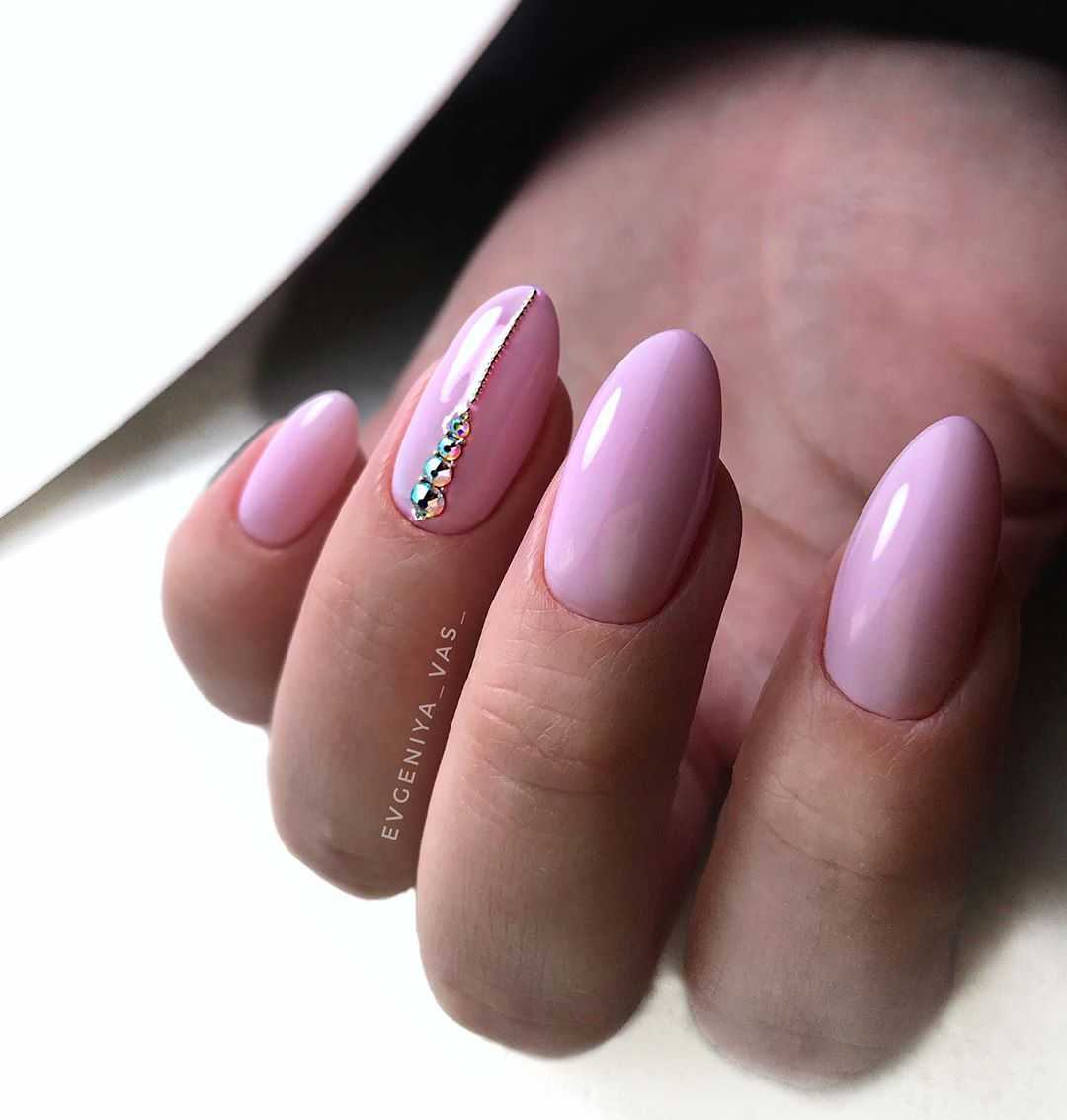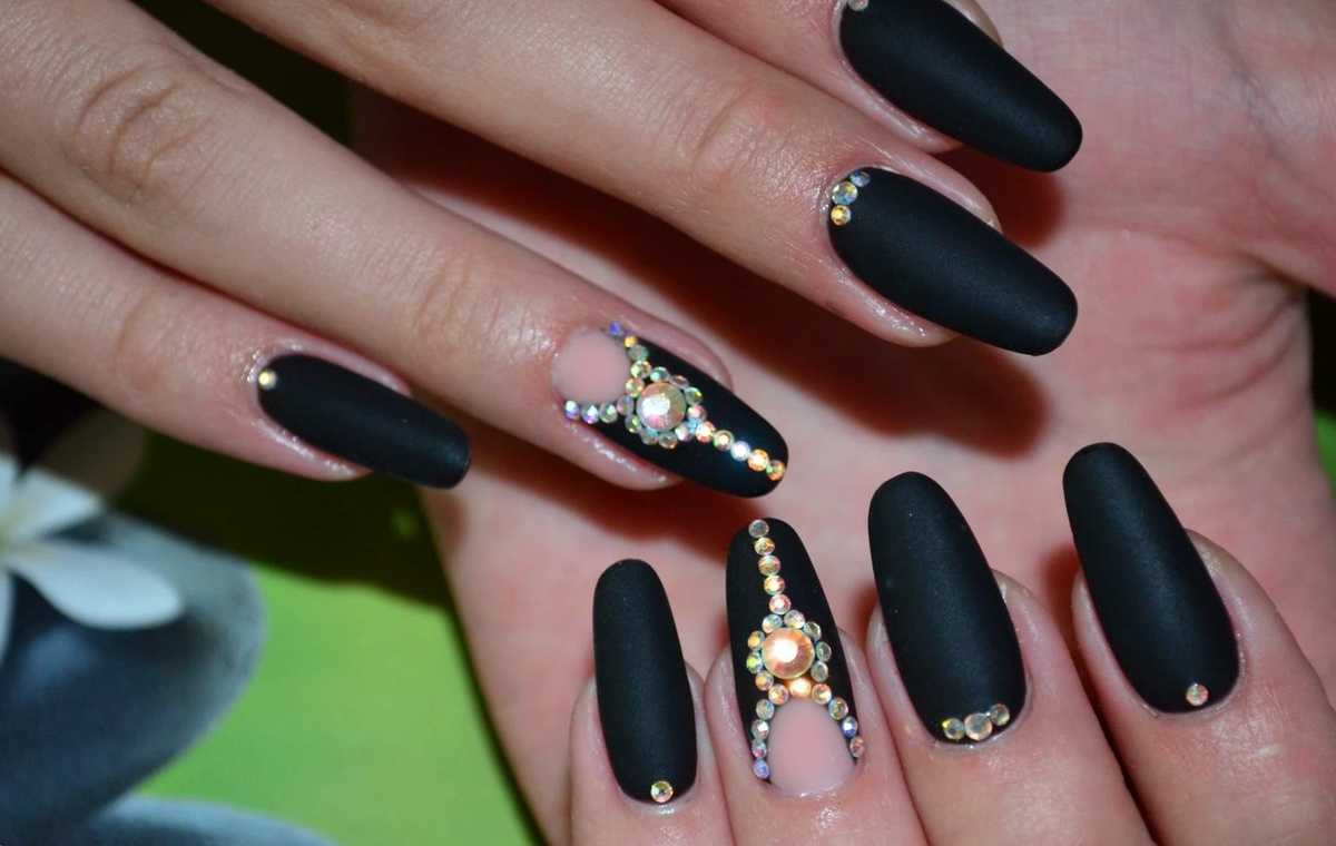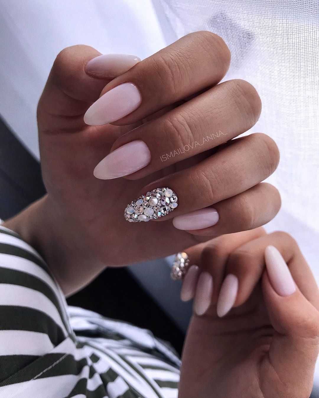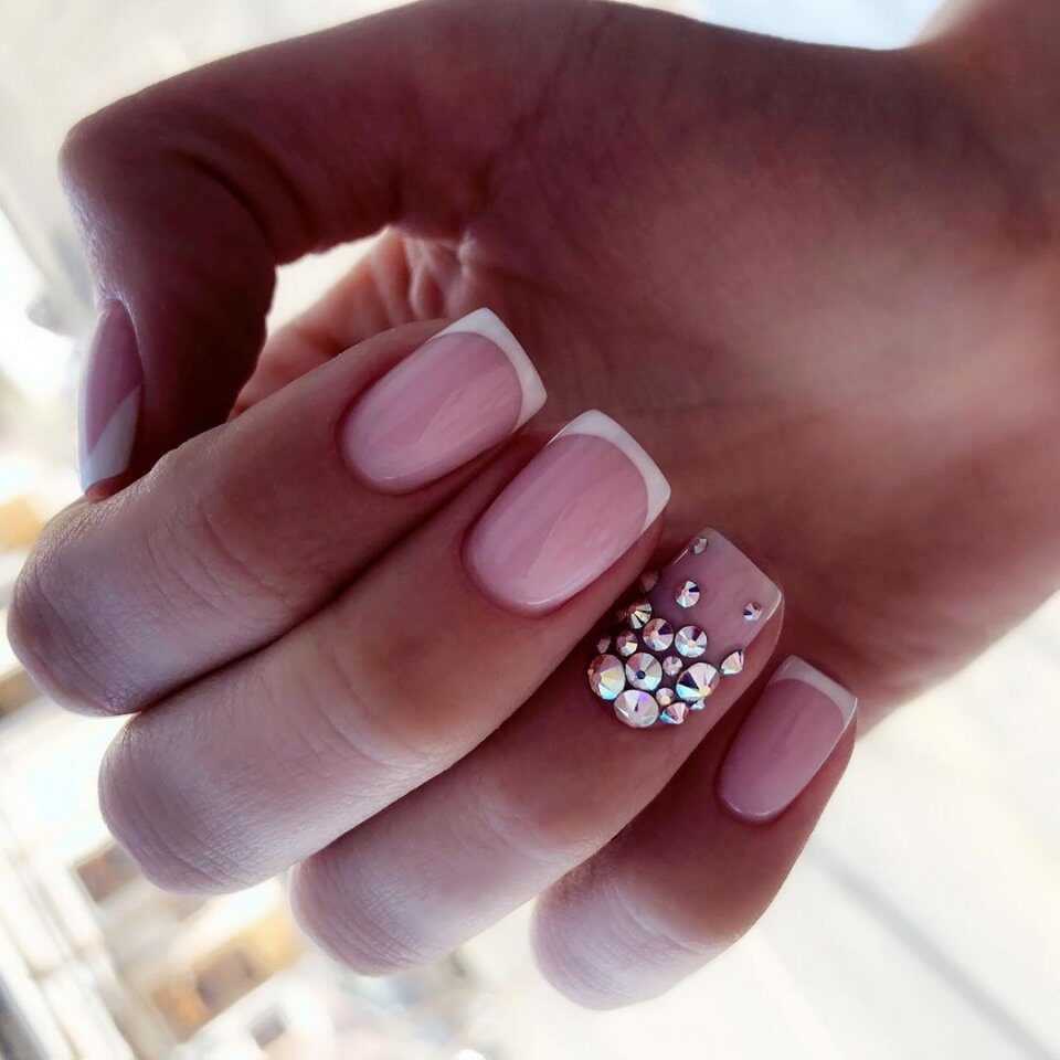 Стразы на ногтях привлекают много внимания, поэтому недопустимо применять этот дизайн к неухоженным рукам. Необходим гигиенический маникюр.