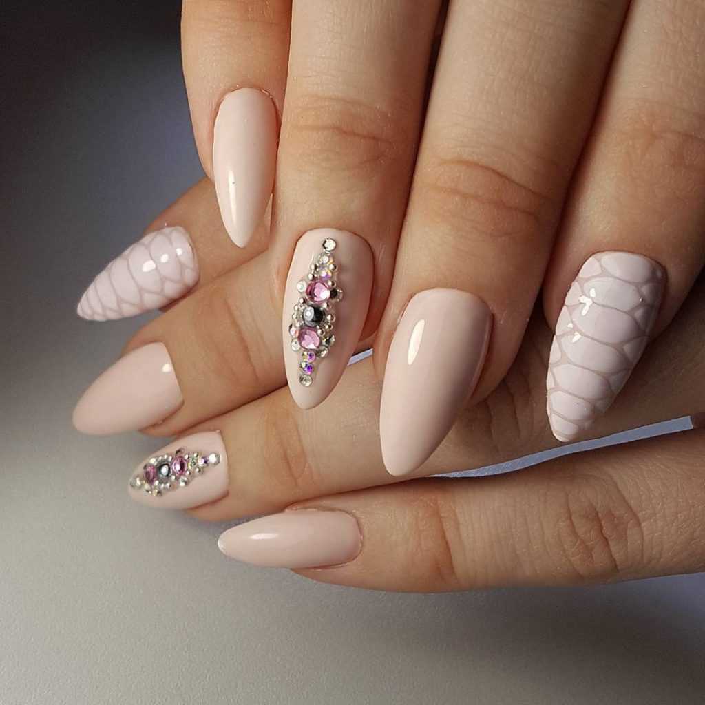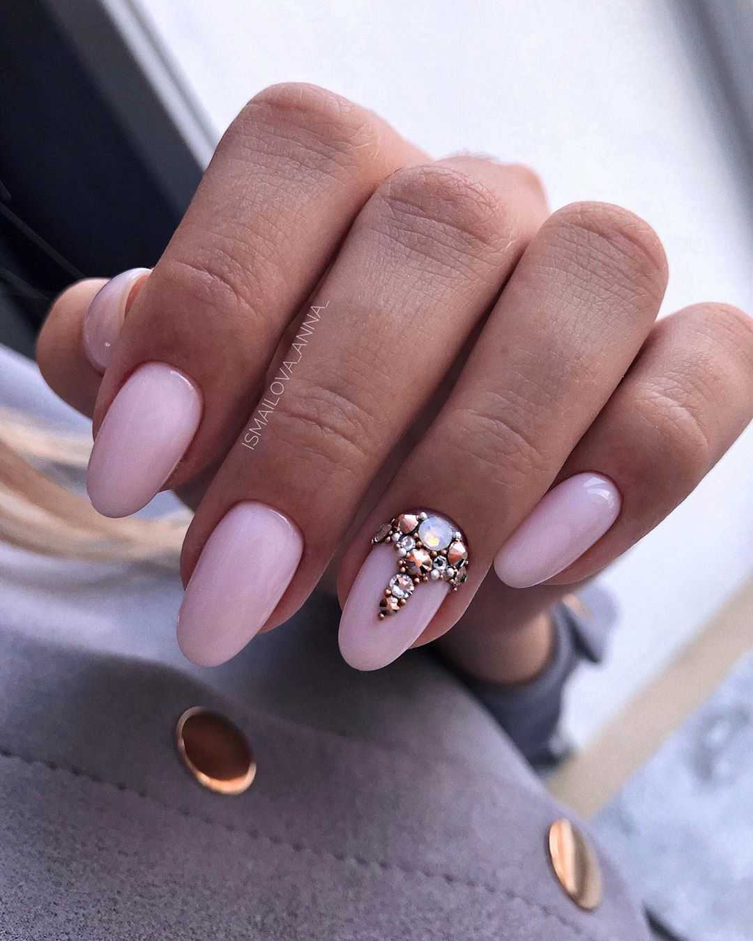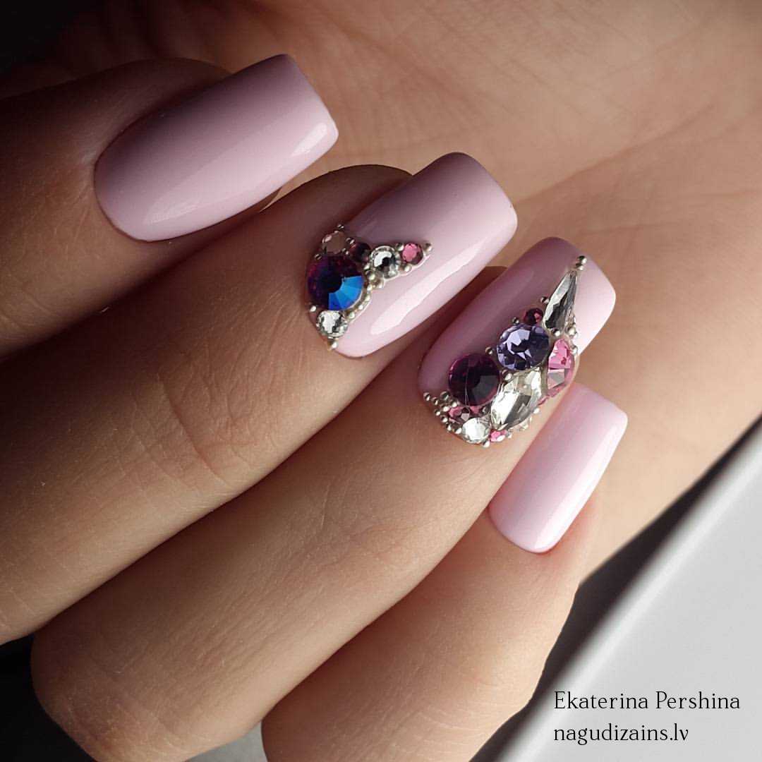- Кристаллы, по своей форме, не должны выбиваться отдельно от общего маникюра.