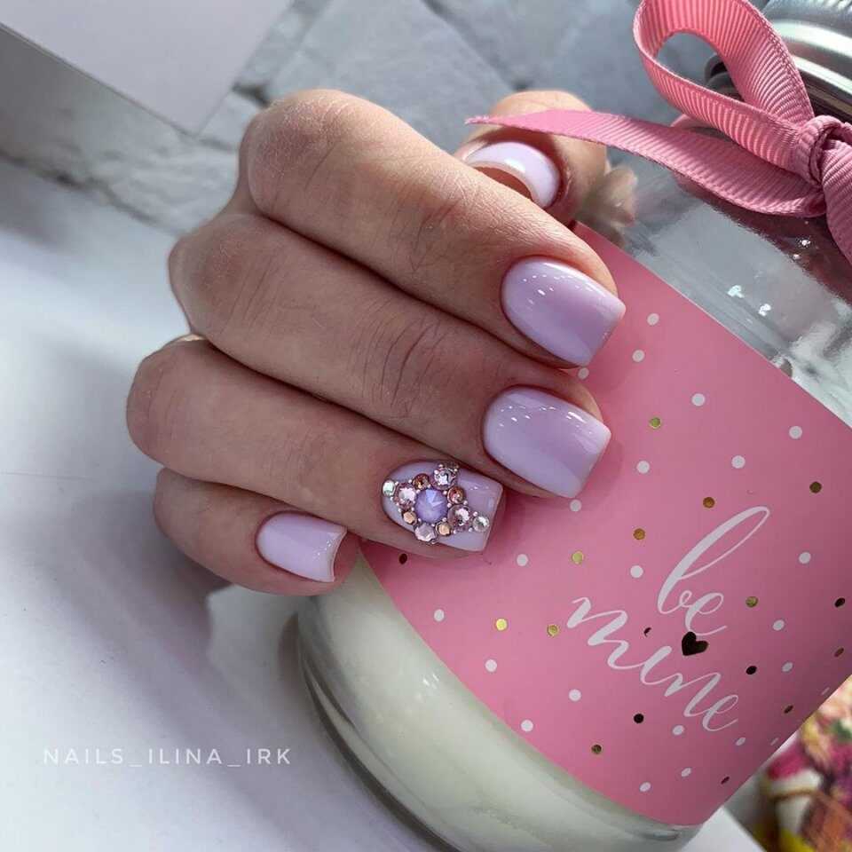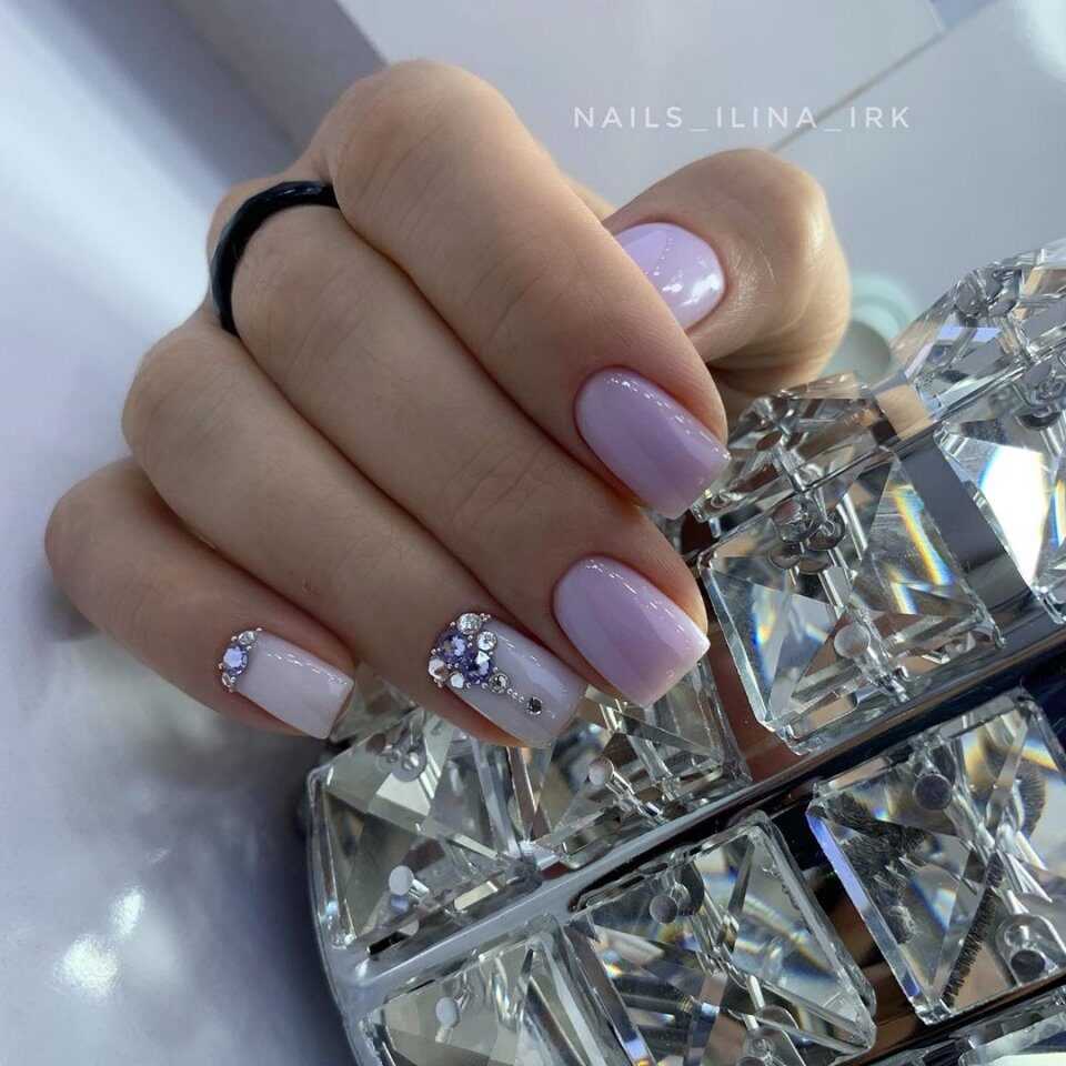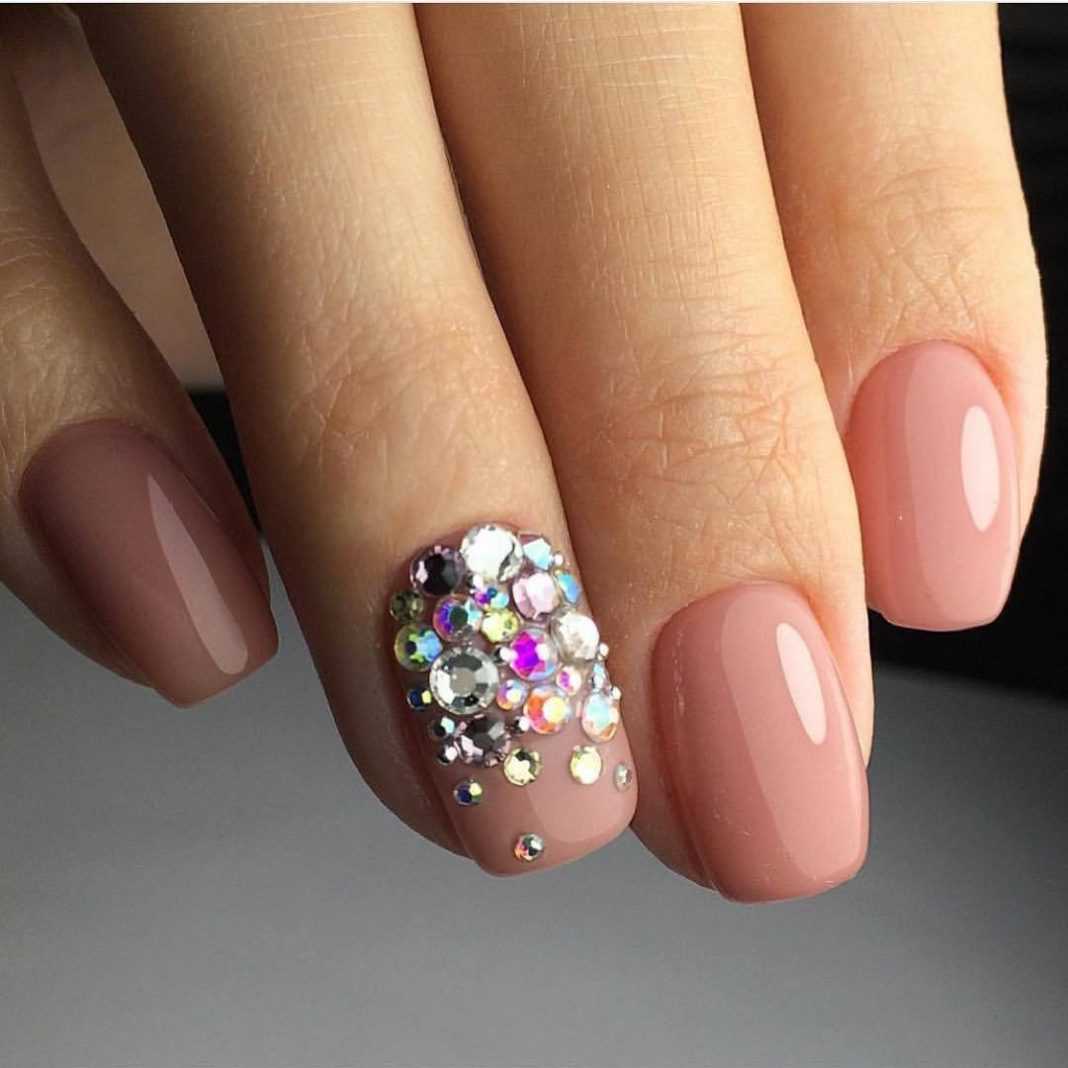- Если речь идёт о маникюре со стразами для коротких ногтей, то здесь не уместно применение большого количества элементов декора.