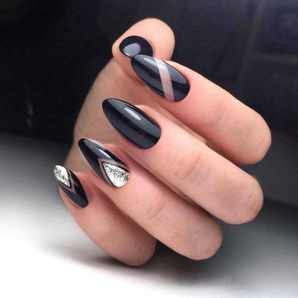 ТЕМНЫЙ МАНИКЮР НА ОСТРЫЕ НОГТИ