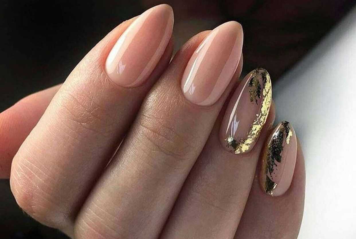 В топовом миндалевидном маникюре фольгу применяют в виде полосок и золотого декора. Также фаворитом в этом виде дизайна является жатая фольга – поталь, которая вне всякой конкуренции и всегда выигрышно смотрится на миндальных ногтях. Это позволяет создавать чудесные повседневные и вечерние виды нейл-дизайнов.