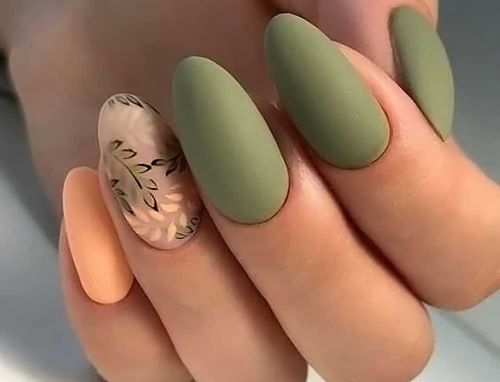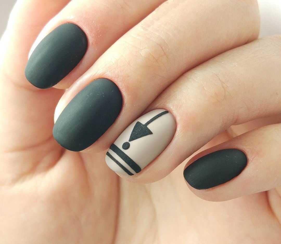 Матовый маникюр на ногтях острой формы