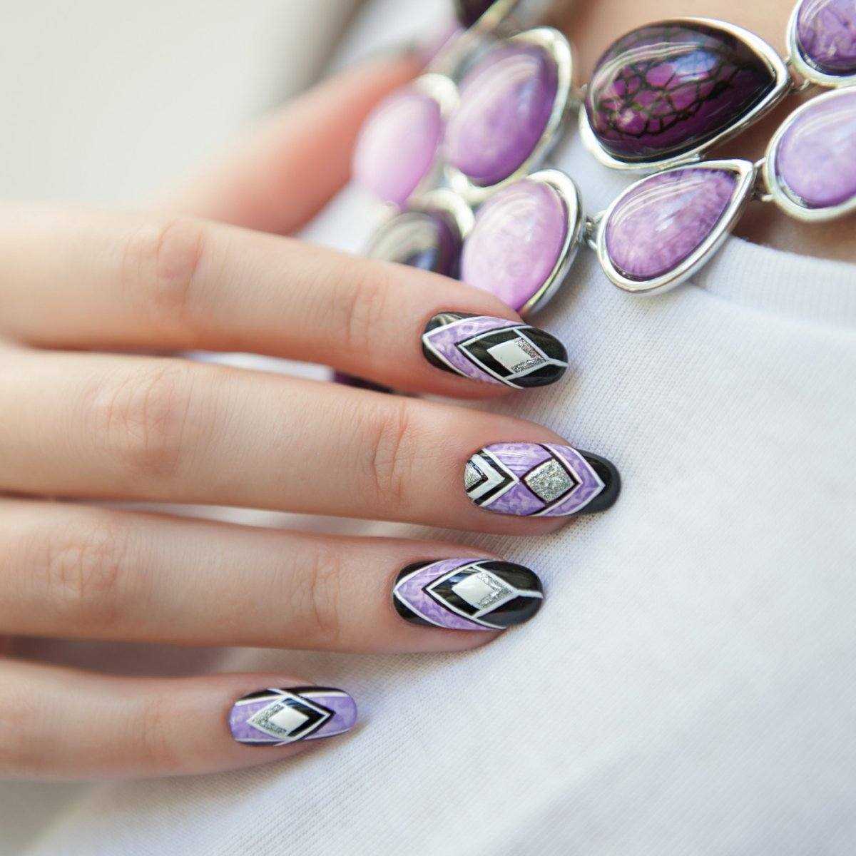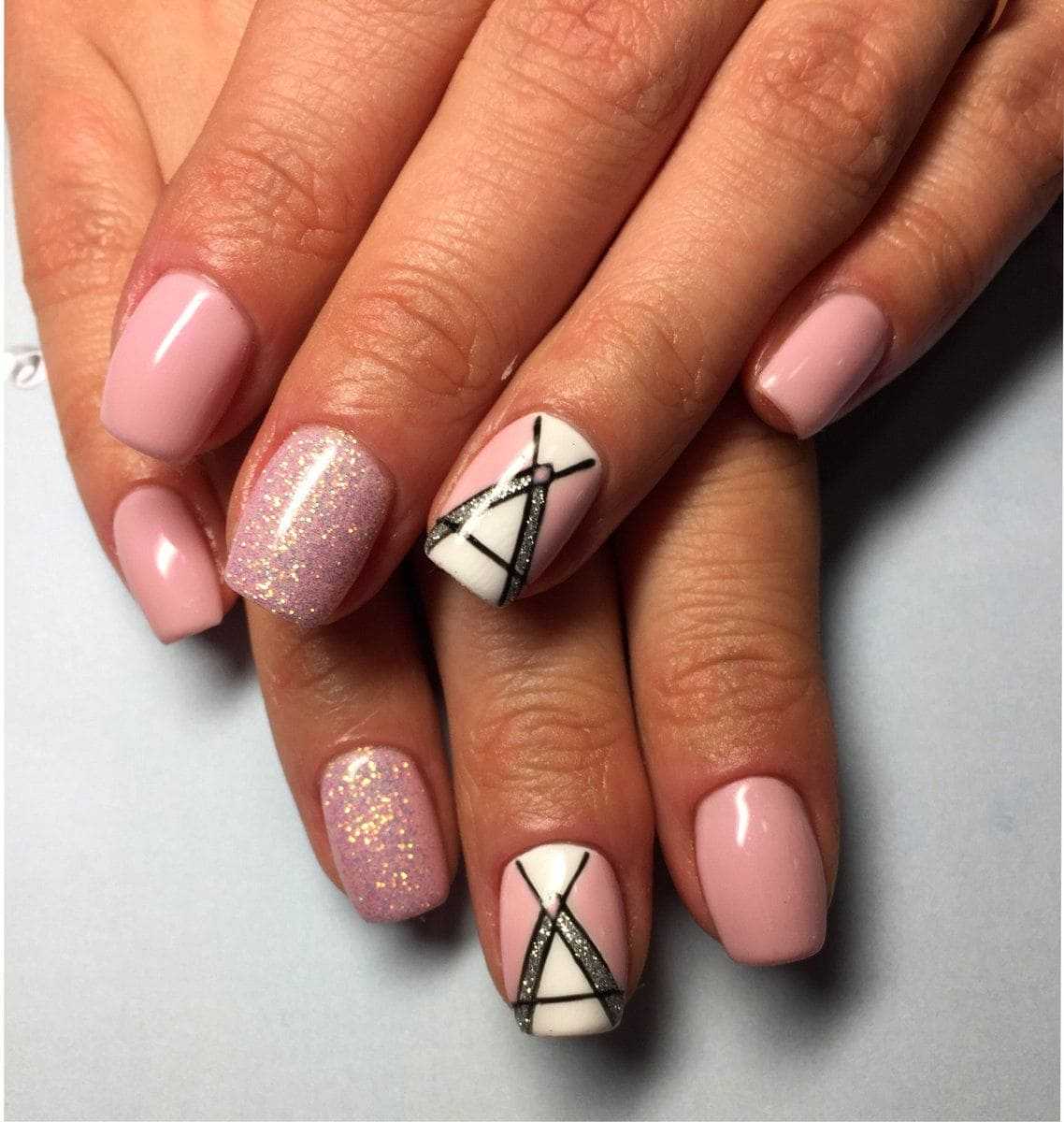 Так много было сказано о геометрии выше, пришла пора подробнее разобраться в данном стиле ногтевого маникюра. Название само собой говорит о прелестях геометрического стиля, и внешне рисунки на ногтях приобретают вид овала, трапеции, треугольника, ромба, квадрата и т.д. Прекрасно сочетается с бесцветным и телесным покрытием.