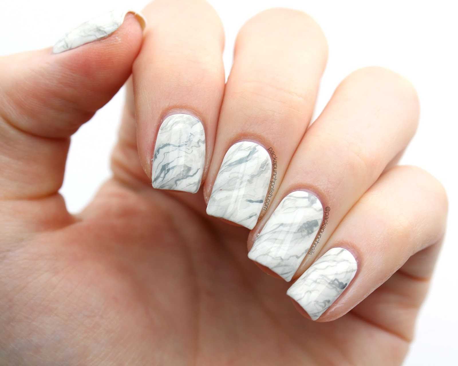 Белый мраморный маникюр