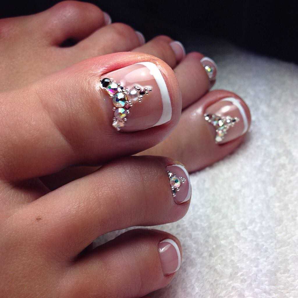 Стразы и бульонки стали чаще использоваться для дизайна ноготков на ногах. Связано это, прежде всего, с огромным разнообразием камней. Девушки всегда могут выбрать камушки поменьше, стразы разных оттенков и форм.