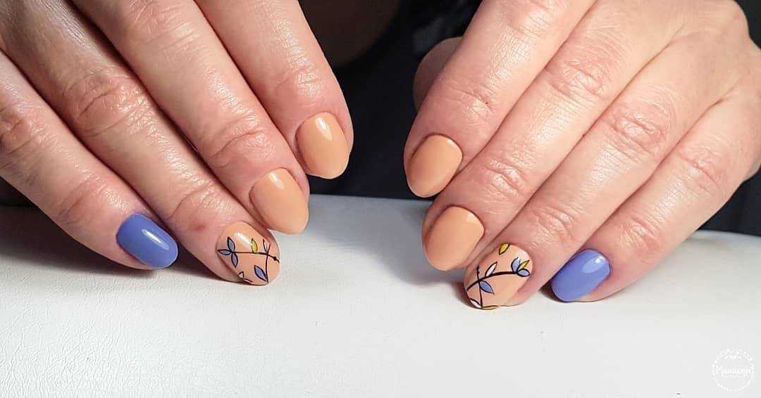 Необычное и яркое сочетание бежевого маникюра с синим. Есть несколько вариантов, как правильно сочетать эти цвета в маникюре: