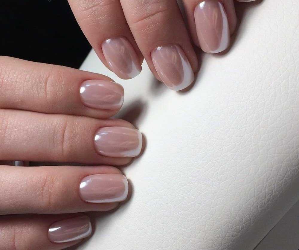 Для такого сочетания отлично подойдет дизайн френч, лунный, геометрический рисунок. Кроме того, белая вуаль на бежевом фоне смотрится празднично и может подойти для свадебного декора ногтей.