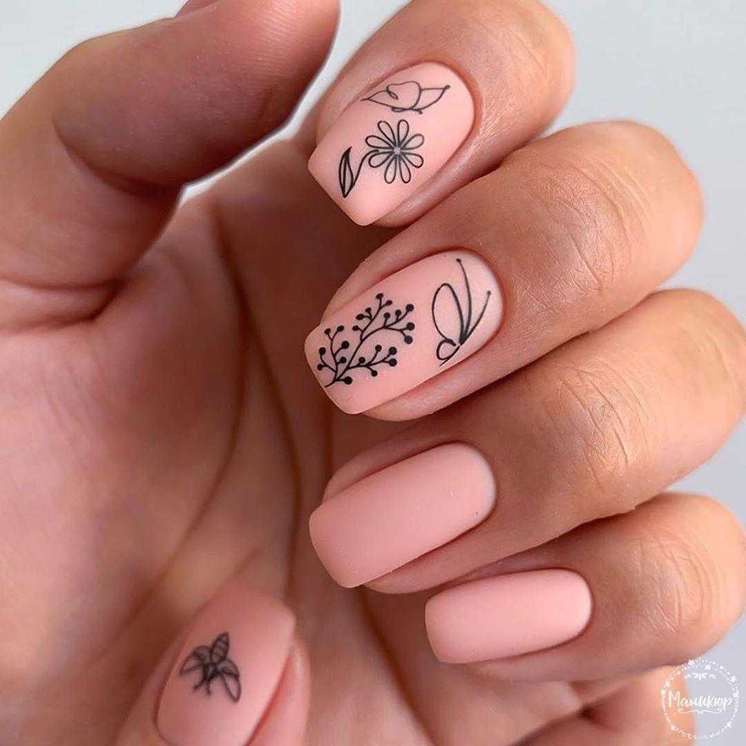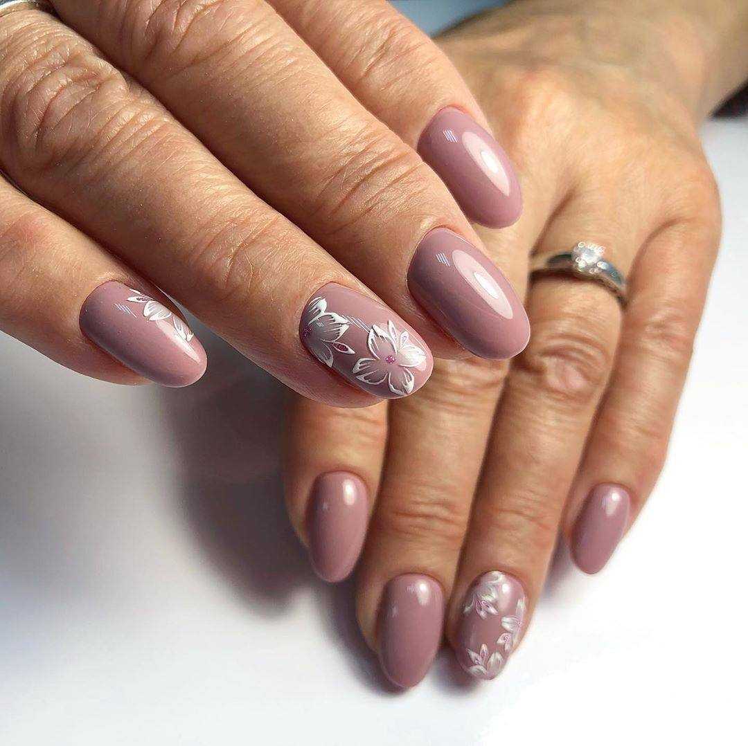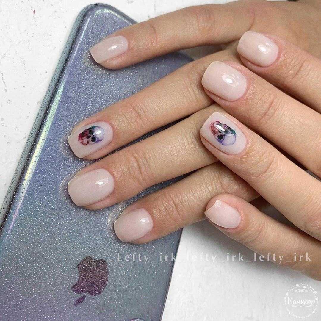 В моде и крупные бутоны, покрывающие всю ногтевую пластину, и изящные мелкие изображения, которые соответствуют тенденции минимализма. Особенно красиво на бежевом фоне смотрятся розовые, темно-синие и белые цветы.