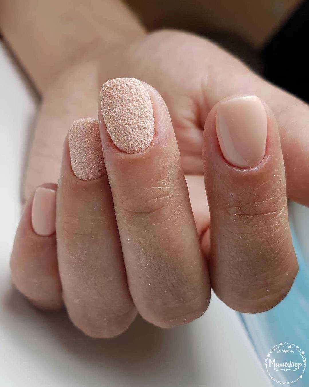 Модной тенденцией 2019 года станет игра фактур. Проще всего сделать модный маникюр бежевого цвета с матовой поверхностью. Это одновременно просто, изысканно и стильно
