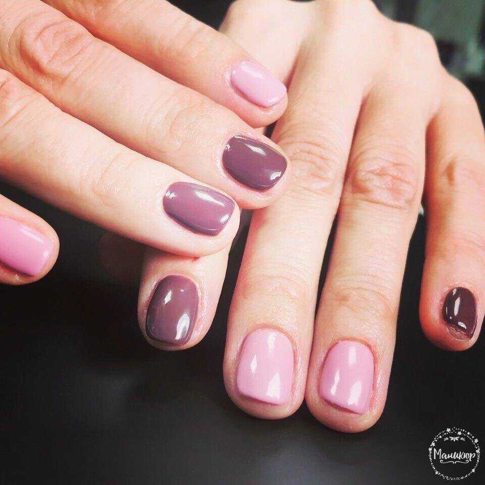 Шоколадный отлично смотрится на ногтях с матовым топом. Его можно сочетать с бежевым, выбрав дизайн “разные руки”. Отметим, что для последнего нет строгих правил — все в руках вашего мастера.