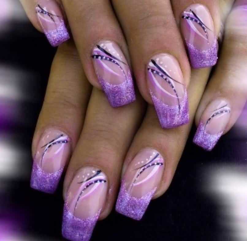 Как показывают многочисленные фото фиолетового маникюра, здесь можно использовать всевозможные виды дизайна: