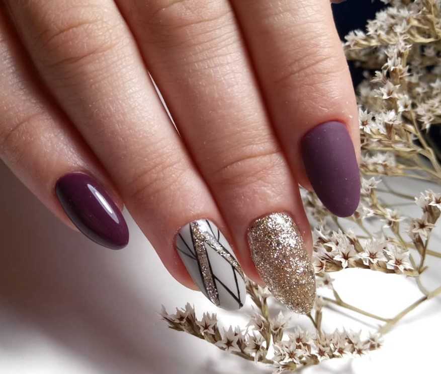 Маникюр фиолетовый с золотом 2022 — самые красивые варианты с фото