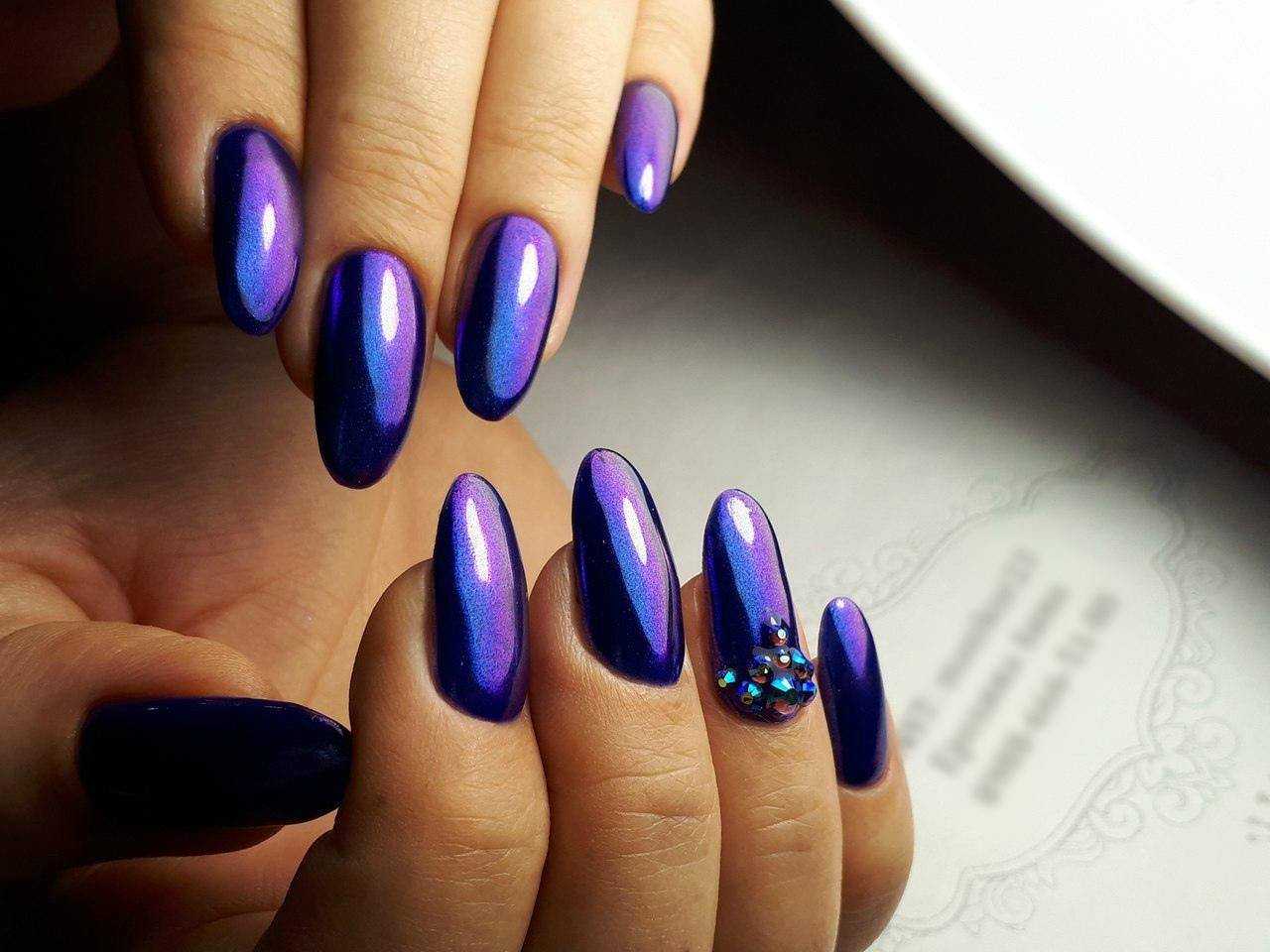 Маникюр с фиолетовым цветом определенно имеет повышенную яркость, и его красивый перелив многим приходится по душе.