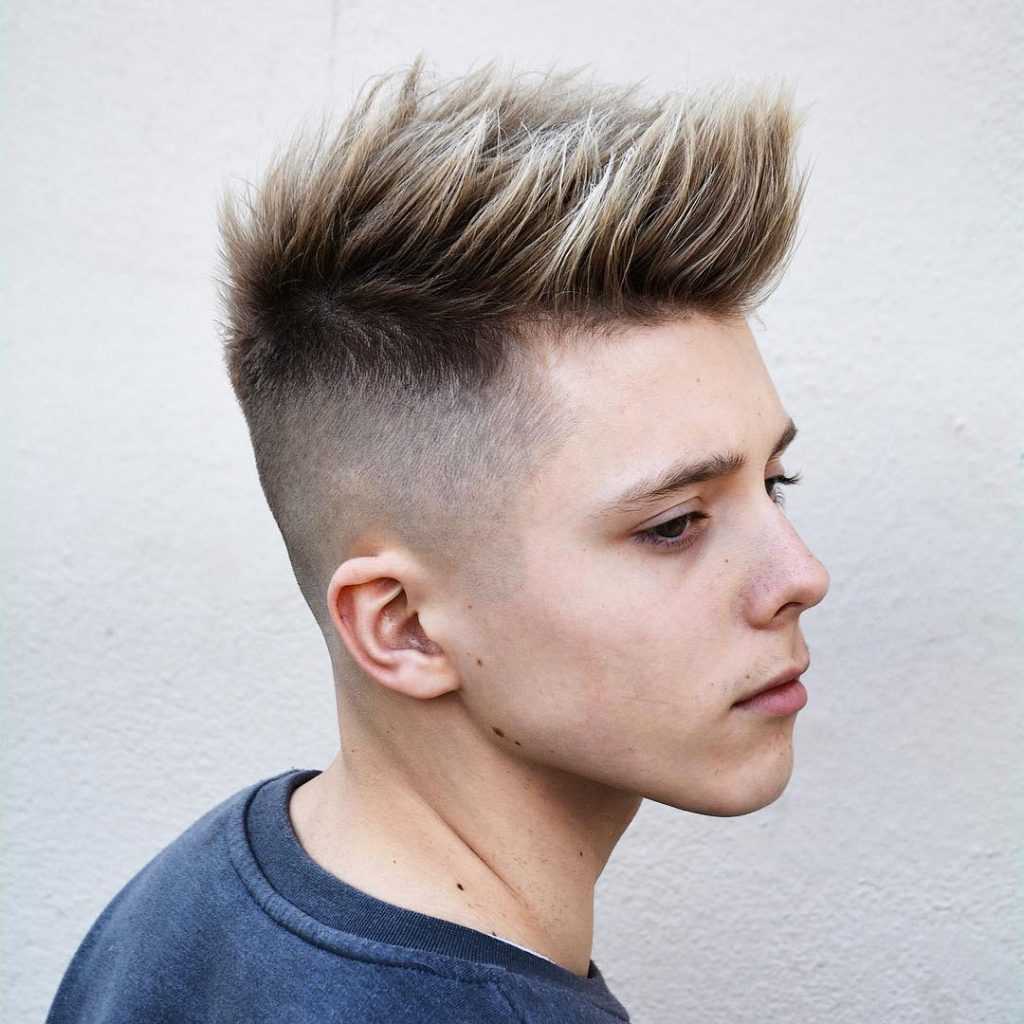 Эта прическа очень часто носит название ложный ирокез. Для нее характерна укладка прядей наверх, практически торчком. Так как виска и затылок делаются короткими, то это только подчеркивает контраст. Использовать этот вариант модельный стрижки можно мальчиков с любой формой лица, кроме овала.