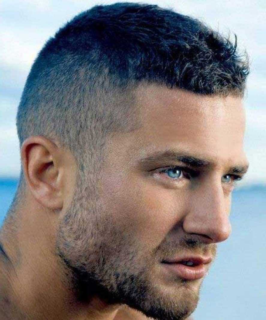 Очень короткая прическа, как в армии, уместна и в обычной жизни. Такая стрижка выглядит брутально и, более того, помогает скрыть редеющие волосы