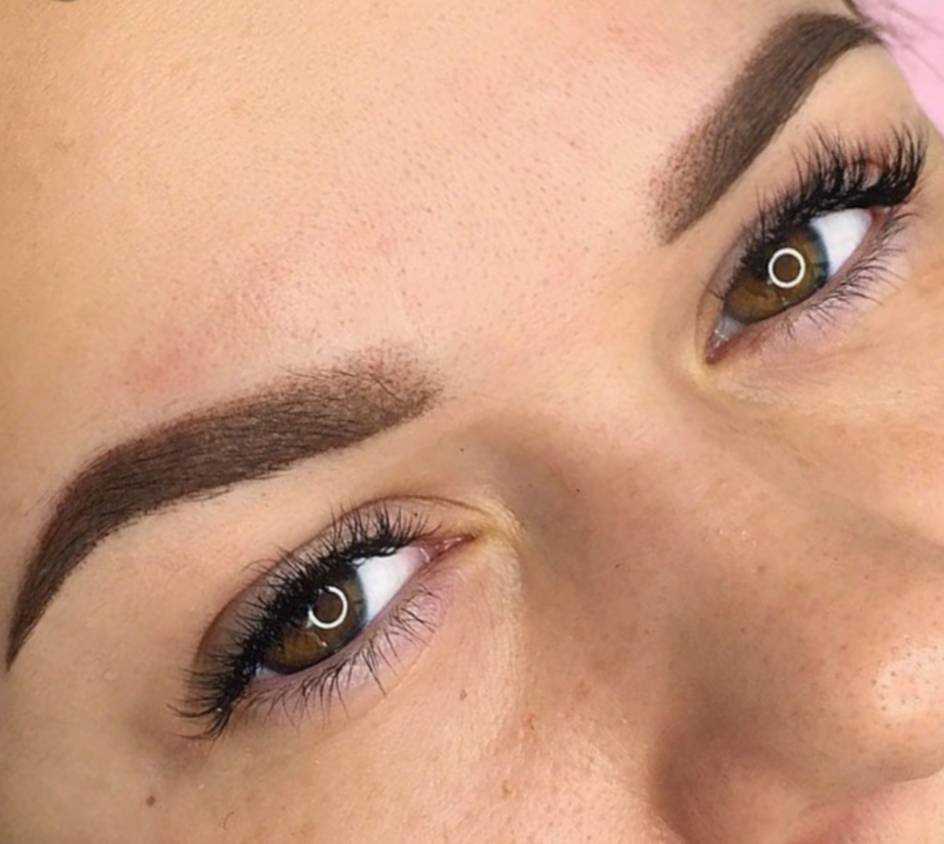 - Микроблейдинг – по сути, тоже является татуажем, но все же имеет существенные отличия. Выполняется без применения машинки, специальным аппаратом. Более щадящая, чем татуаж техника. Подойдет для блондинок, потому что в результате макияж получается заметным, но не слишком ярким.