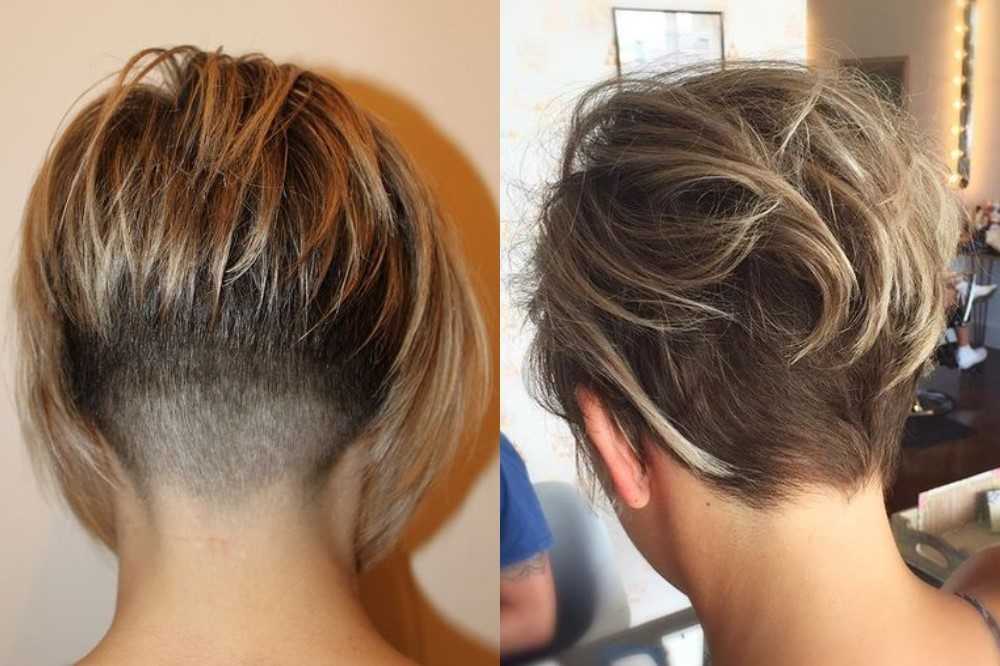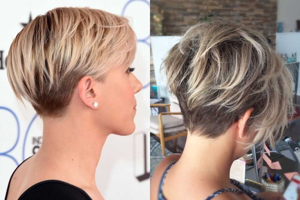 Стрижка на короткие волосы подразумевает максимальный объем на макушке и удлиненные пряди в области лица. На затылке создается окантовка разной формы, открытая область не ограничивает творческие идеи мастера. Подходит для активных девушек, небрежные градуированные пряди добавляют небрежность, легкость образу.