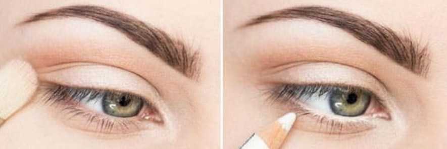 Чтобы приподнять верхнее веко, его нужно полностью осветлить при помощи матовых теней светлого естественного оттенка. Затем нужно выделить область над верхним веком более темными тенями и тщательно растушевать. Дополнительно можно воспользоваться черным карандашом и выделить с его помощью внешние уголки глаза.