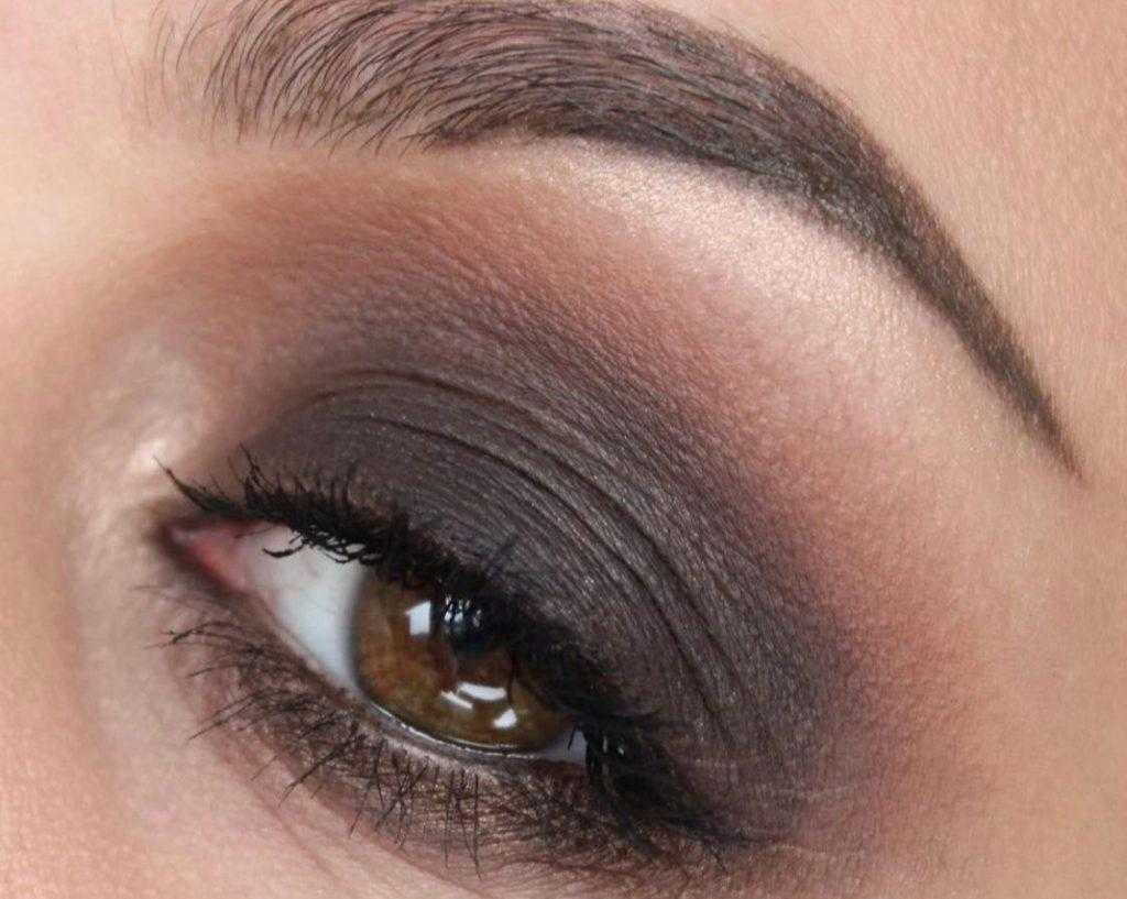 Данный вид макияжа в завершенном виде на глазах серого цвета