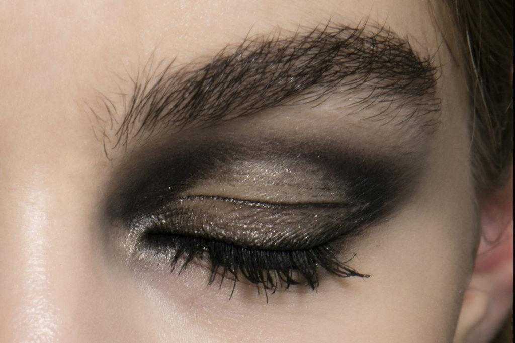 Линия роста верхних ресниц подводится мягким пудровым лайнером угольно-черного цвета. Поверх наносятся темно-серые или черные матовые тени. Распределять продукт удобно полужесткой плоской кистью из натурального ворса.