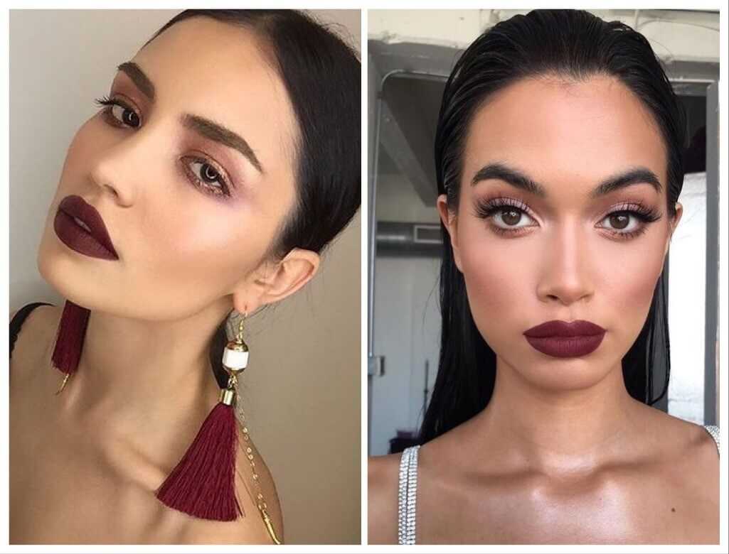 Если и красить губы помадой, то только такой, чтобы было максимально заметно — подойдут темные и алые тона.