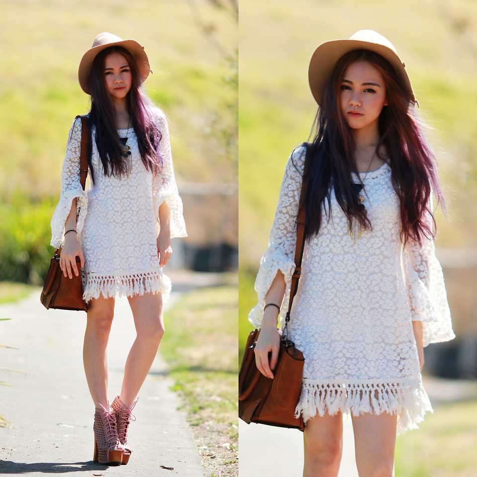 В белоснежном дополнении бежевые платья наполняются воздушностью и невесомостью. Такой дуэт – самый выигрышный для обладательниц точеной фигуры, а вот девушкам с лишними килограммами от него стоит отказаться и сделать свой выбор в пользу более темных тандемов, которые визуально уменьшают параметры силуэта.