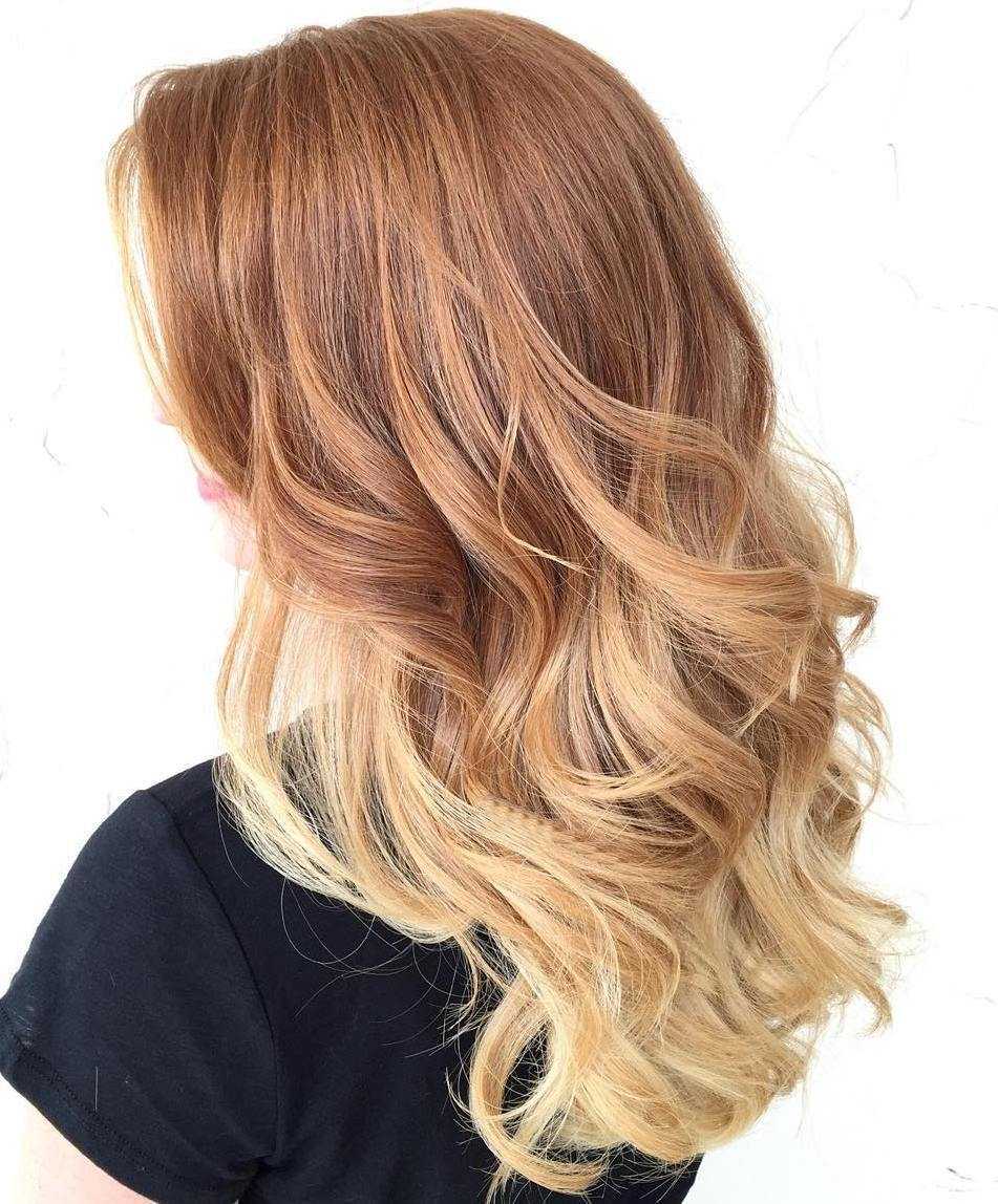 Тёплый цвет с незначительным медным подтоном подходит большинству девушек с цветотипом «весна» или «осень». Балаяж рыжий выгодно подчеркнёт красноватый тон прядей.