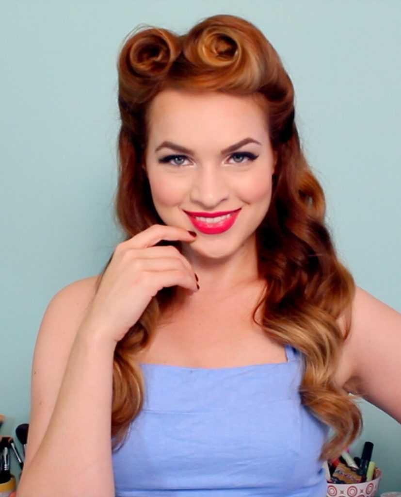 Букли еще одна неотъемлемая частица ретро стиля. Буклями можно оформить как всю шевелюру, так и просто челку. Ими можно украшать начесы, хвосты, пучки и прочее.
