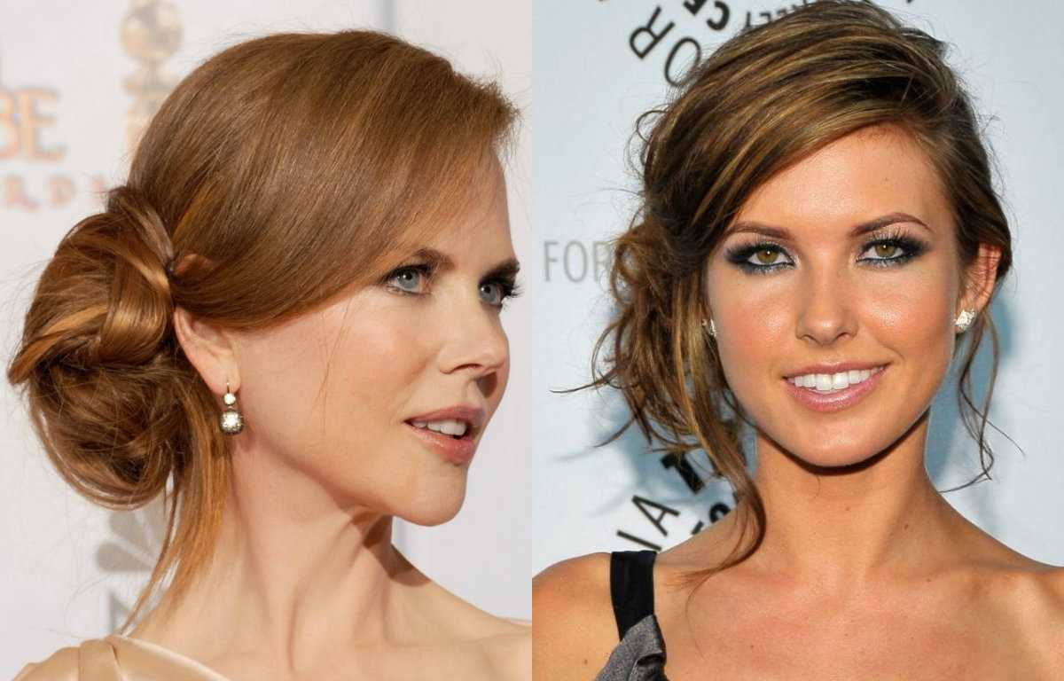 Фото торжественных причесок на средние волосы наглядно демонстрируют, что можно выглядеть шикарно и с объемными локонами, и с обычным греческим пучком.