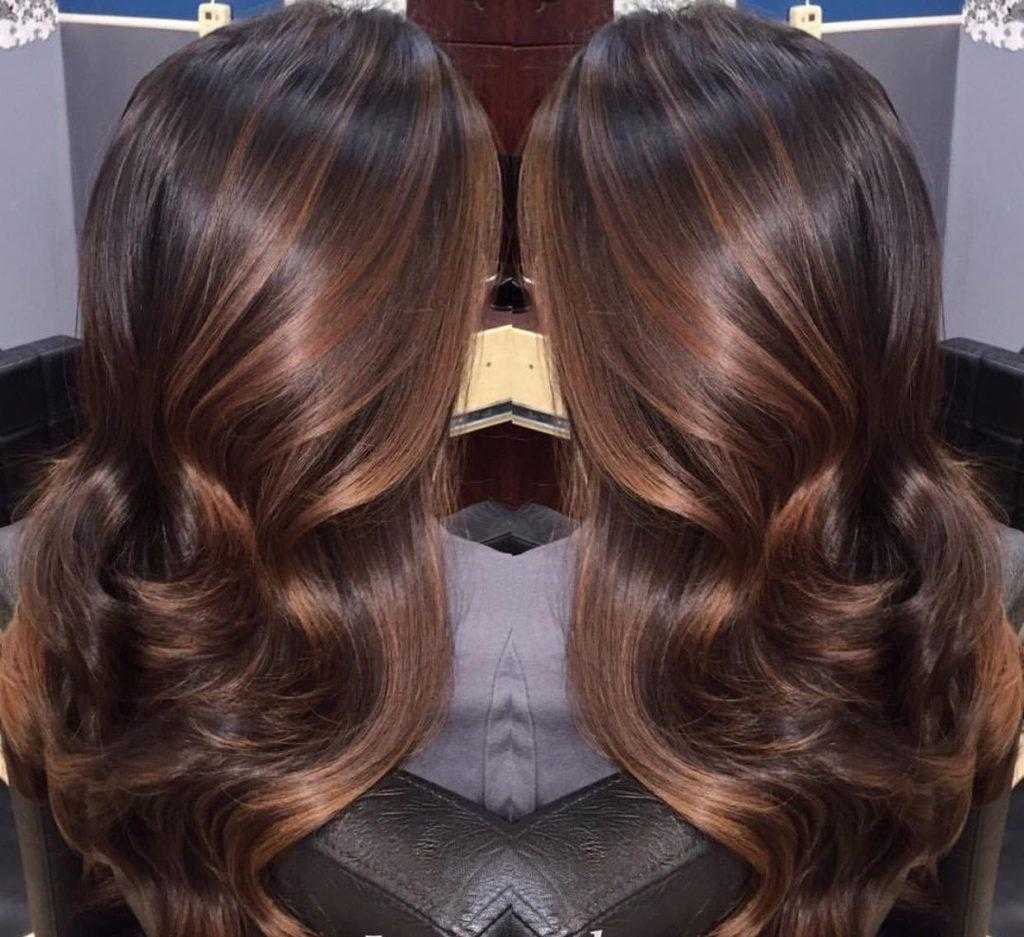 На заметку! Сделать цвет более интересным и глубоким помогут сложные техники окрашивания, такие как шатуш или балаяж. В сочетании с цветом шоколада темные или, наоборот, высветленные пряди выглядят очень привлекательно, они визуально добавляют шевелюре объема, а локонам – динамики.