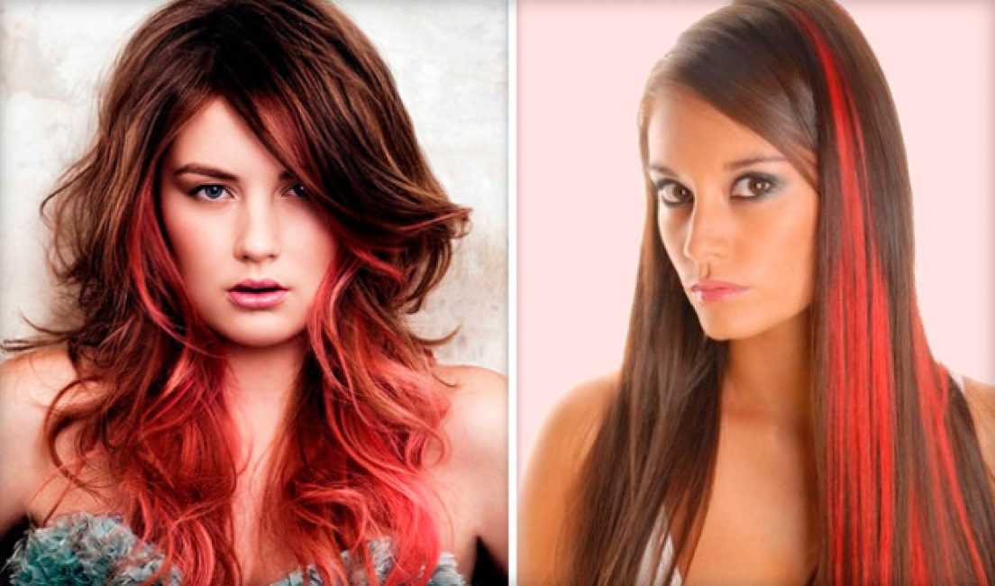 - Мелирование красным. Броские натуральные локоны-прядки, бордового цвета, будут смотреться, на фоне шоколада, эффектно, можно, колоритно.
