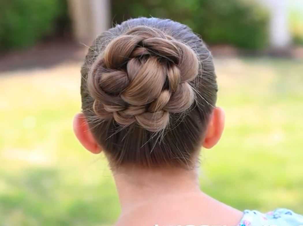 - Чтобы сделать прическу более элегантной, можно уложить две косички и зафиксировать шпильками. Полученная прическа будет напоминать цветок.