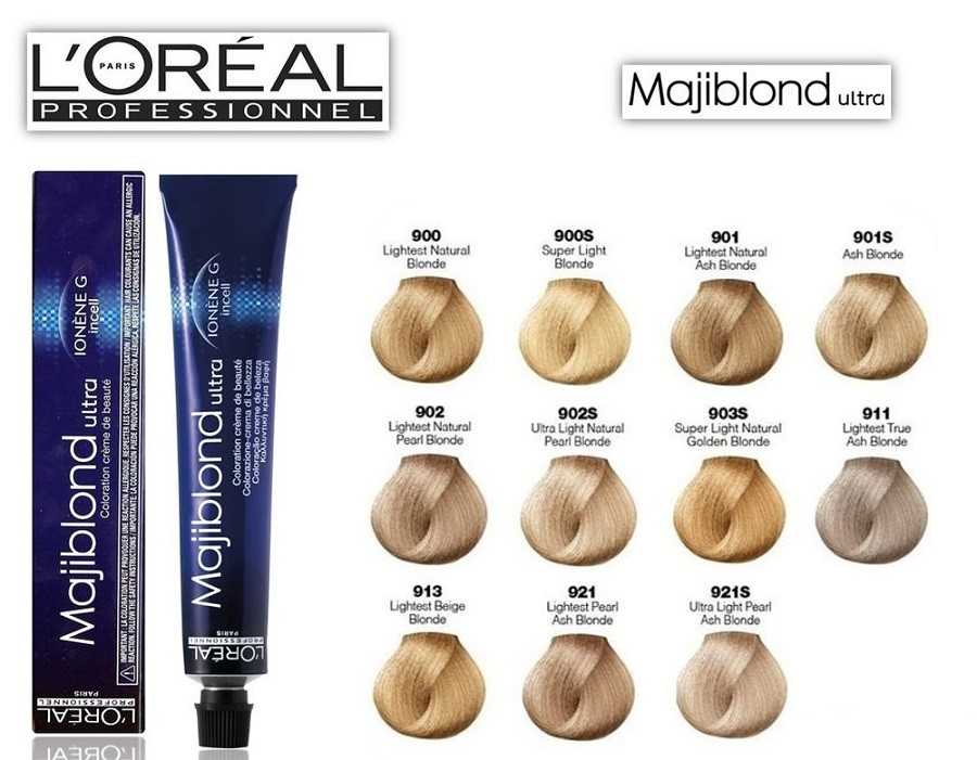В серии Majiblond – это оттенки 901, 901s, 911 , дополнительные перламутрово-пепельные 921, 921s. Безаммиачная серия Inoa – 6.1, 7.1 – 10.1.