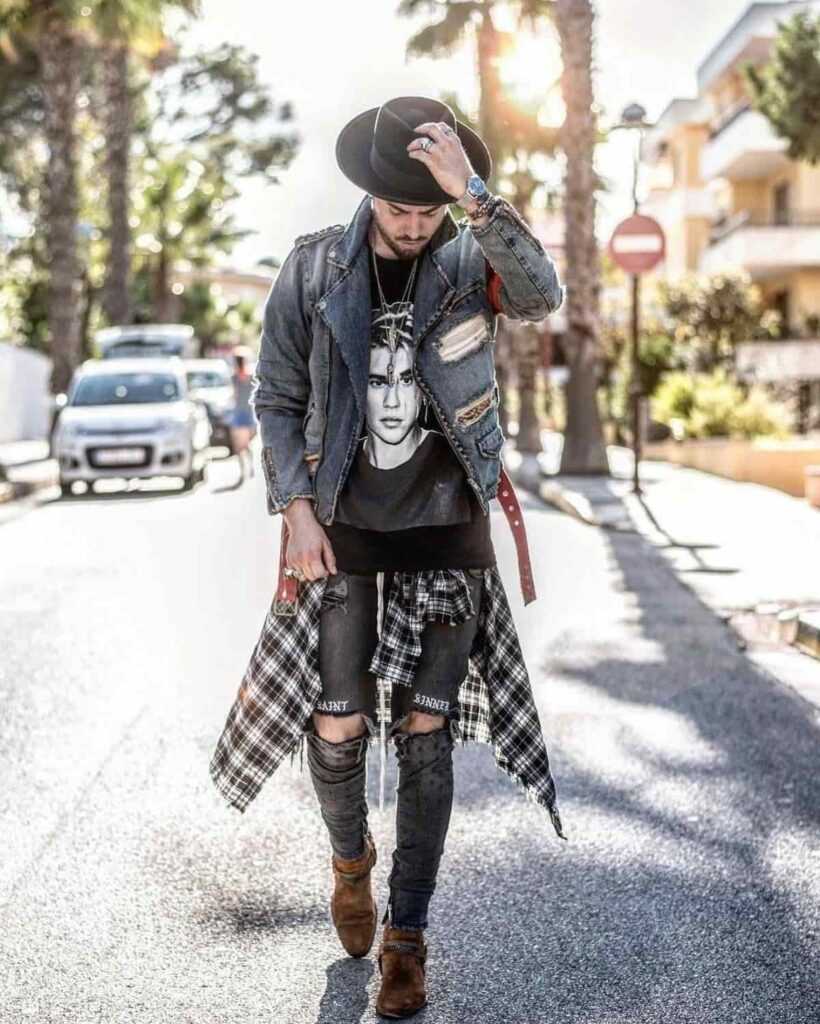 Одеваться в этом стиле нужно определённым образом. Мужчине необходимо будет отказаться от строго классических костюмов. Стоит также убрать из гардероба некоторую повседневную одежду. Лучше всего подойдут для образа джинсы, рубашка в клетку, майка, яркий, бросающийся в глаза пиджак.