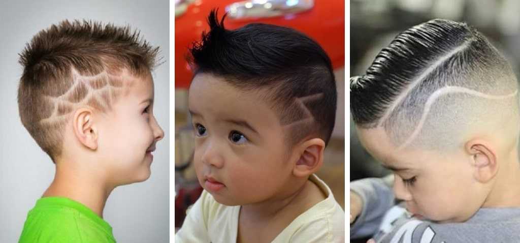 Очень круто смотрятся выбритые бока и более длинные волосы у корней. А если вам и вашему маленькому герою хочется немного безумия — можете выбрать узоры.